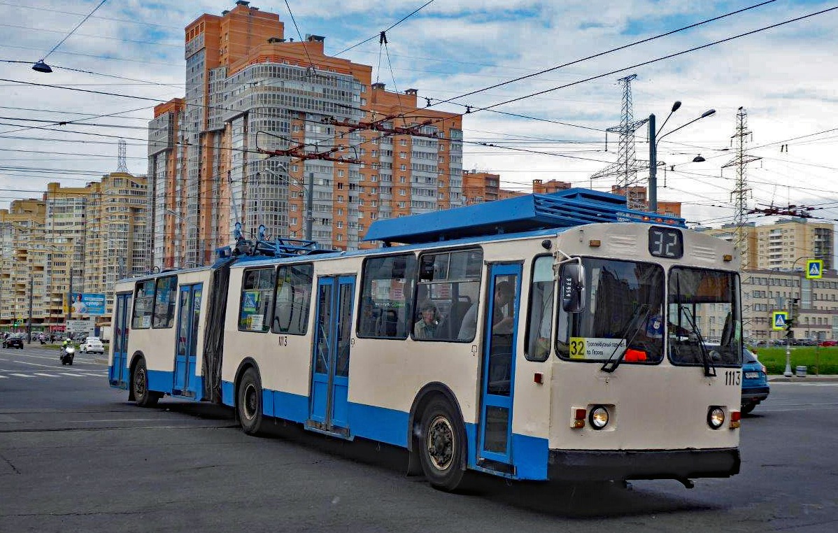 St. Petersburg Obusse, Gelenkwagen 1113 (ZiU / 1992) auf der Linie 32 in der Nähe von Ulitsea-Desantnikov.