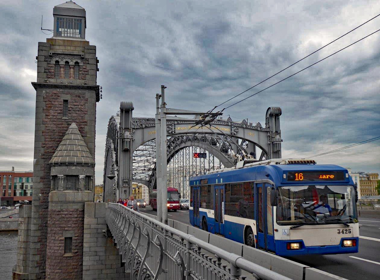 St. Petersburg Obusse, Oberleitungsbus 3425 (BKM / 2008) auf der Bolsheohtinskiy-Brücke in Linie 16.
