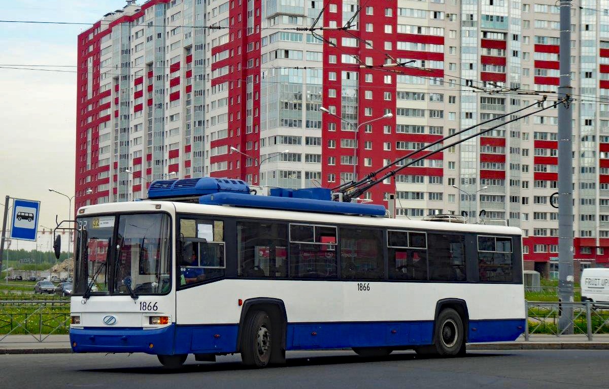St. Petersburg Obusse, Oberleitungsbus 1866 (BTZ-52768/2013) am heutigen Endpunkt der Linie 32 in der Nähe von Prospekt Patriotov.