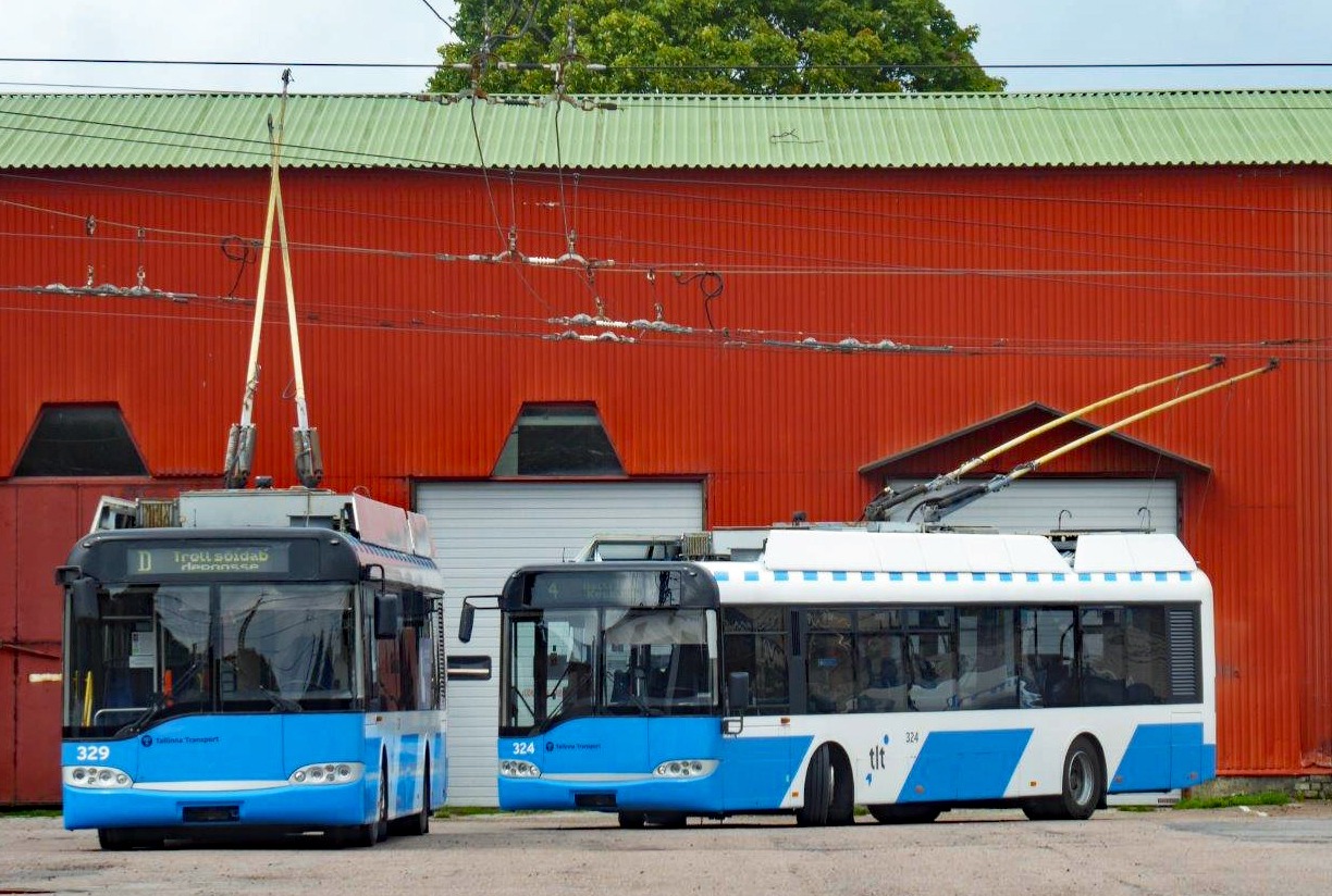 Tallin Obusse, 4 Immer noch ein modernes Obus-System, 338.326 und 328 am Trolleybus-Terminal Keskuse.