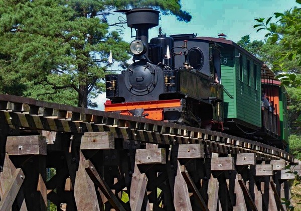 Mit Hilfe von EU- Mitteln konnte 2010 die erste 1,4 km lange Etappe, ein Rundkurs realisiert werden. Bestechend der Bahnhof am Museumseingang mit historischem Empfangsgebäude und dreiständigem Heizhaus. 2018 wurde eine 3 km lange Zweigstrecke „ins Gebirge“ zu einem Erlebnispark mit teils spektakulärer Trassierung und Drehscheibe am Endbahnhof.