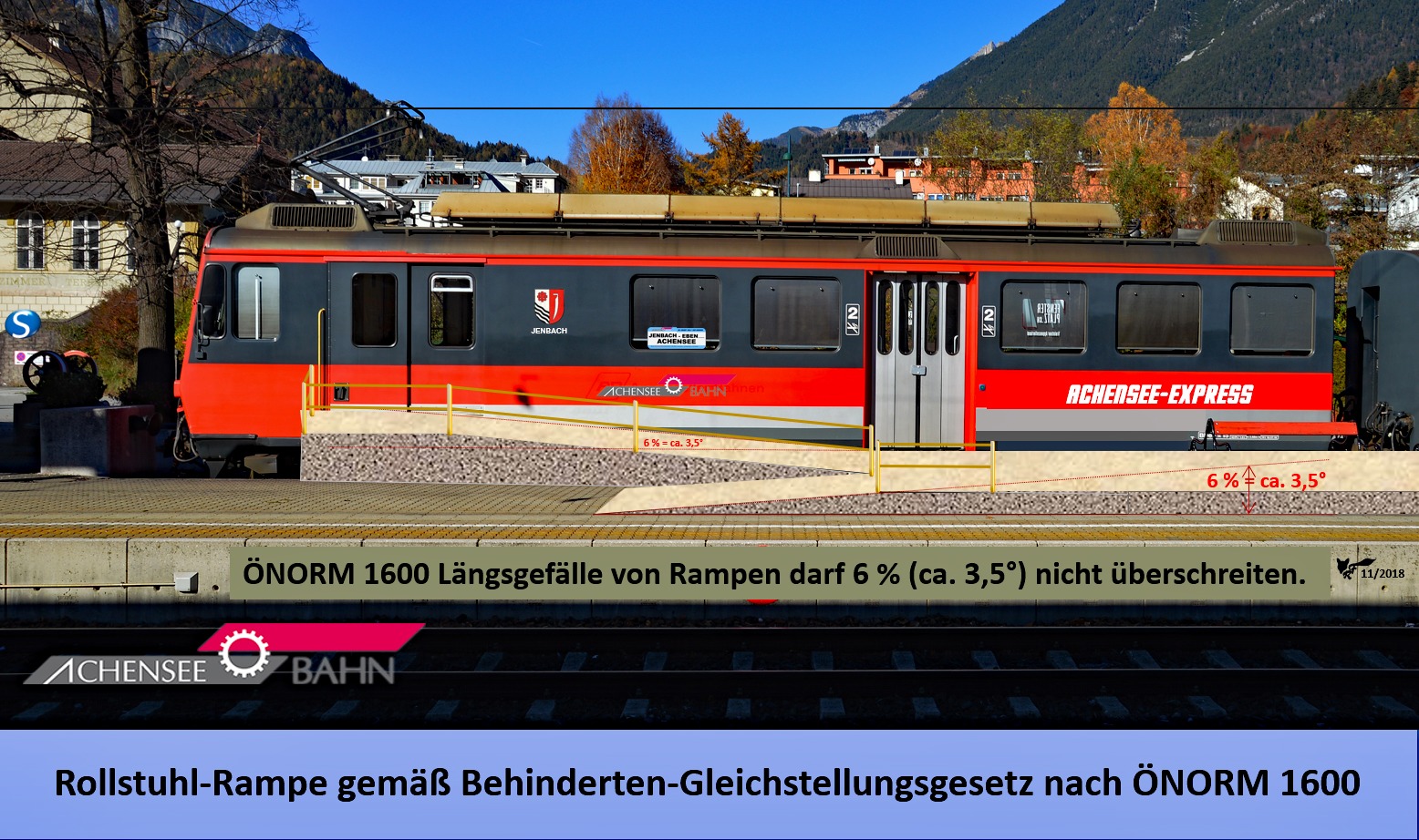 Mit dem Ausbau der Haltestellen zu höheren Bahnsteigen und jeweils einer Rollstuhlrampe zum „Multifunktionsabteil“ der Appenzellerbahn-Triebwagen, kann auch dem Behindertengleichstellungsgesetz unkompliziert entsprochen werden. Die Achenseebahn als moderne Pendlerbahn eröffnet der Bevölkerung eine wachsende umweltfreundliche Mobilität, bei gleichzeitig überschaubareren Investitionskosten und Verringerung des STAUS.