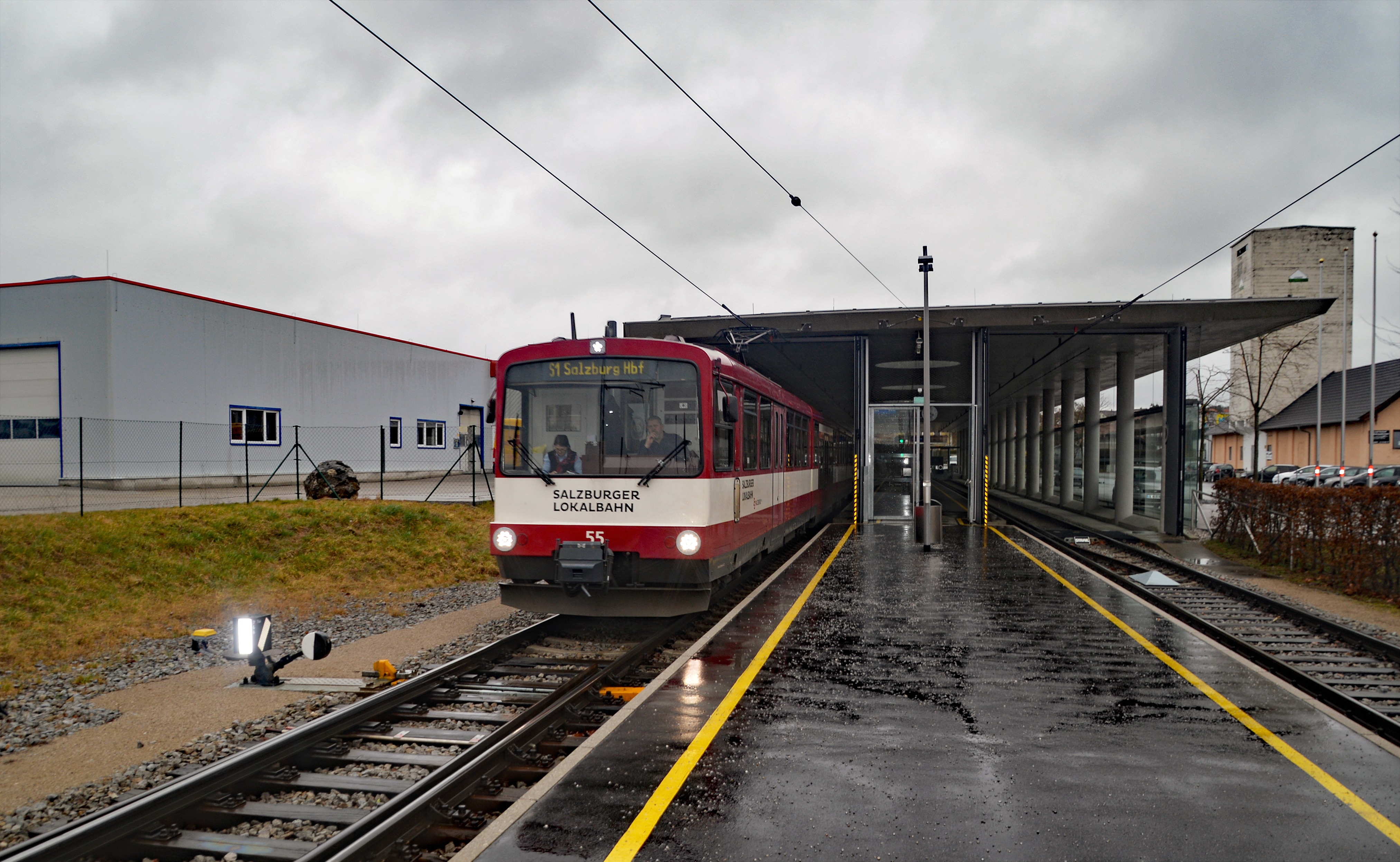 Impressionen von der Salzburger Lokalbahn, wie sie ähnlich auch zwischen Lamprechtshausen und Gundertshausen, bzw. Ranshofen aussehen könnten.