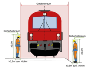 Platzbedarf, Gefahrenräume und Sicherheitsabstände bei eingleisigen Schienenbahnen. mit freundlicher Genehmingung © ÖBB