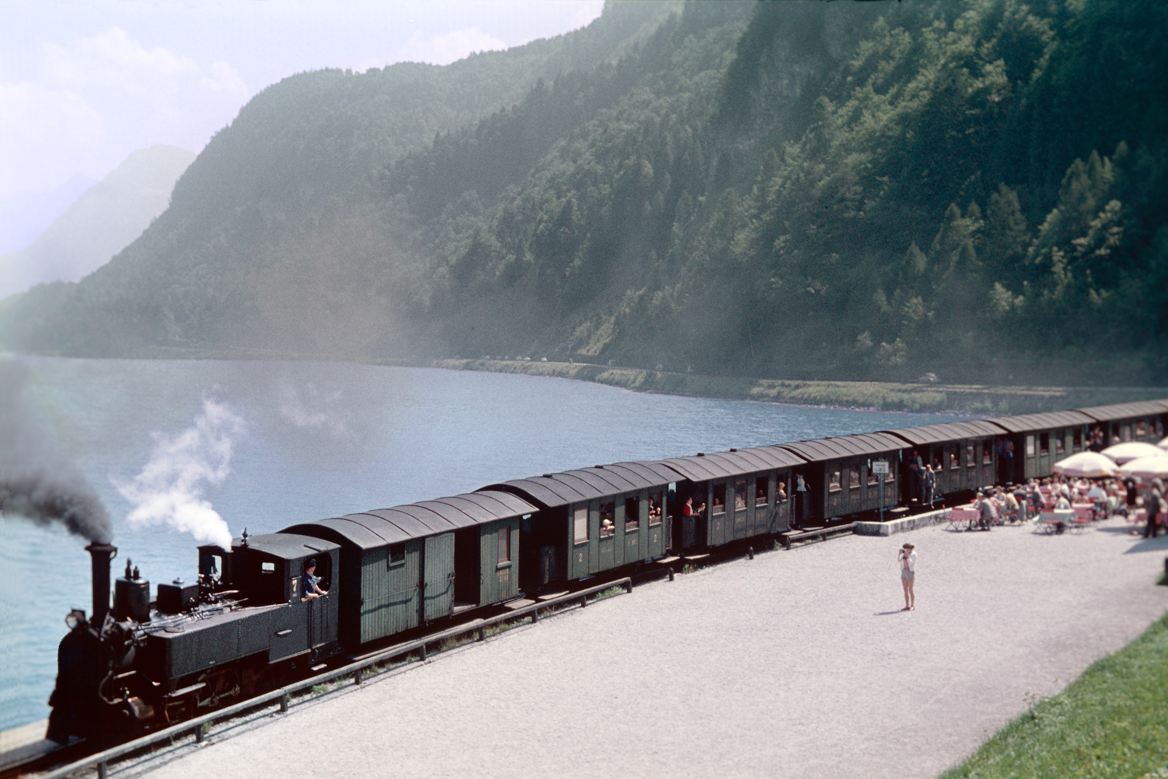 Historisches Foto von der Salzkammergut-Lokalbahn SKGLB - St.Gilgen. DI Harald Navé, Lueg, 2.8.1957. Lok 7.