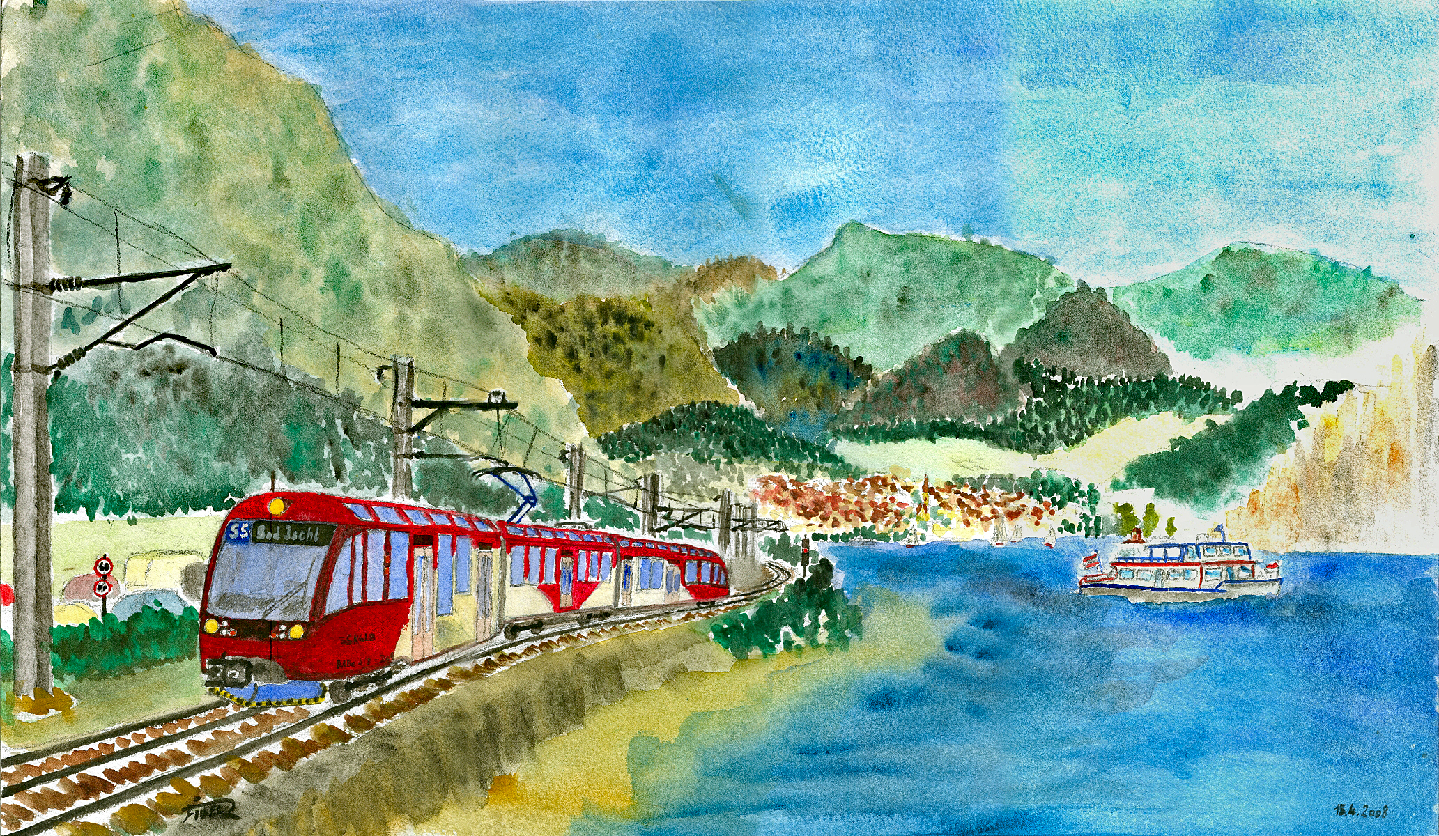 Aquarell SKGLB S5 Neue Ischlerbahn am Wolfgangsee