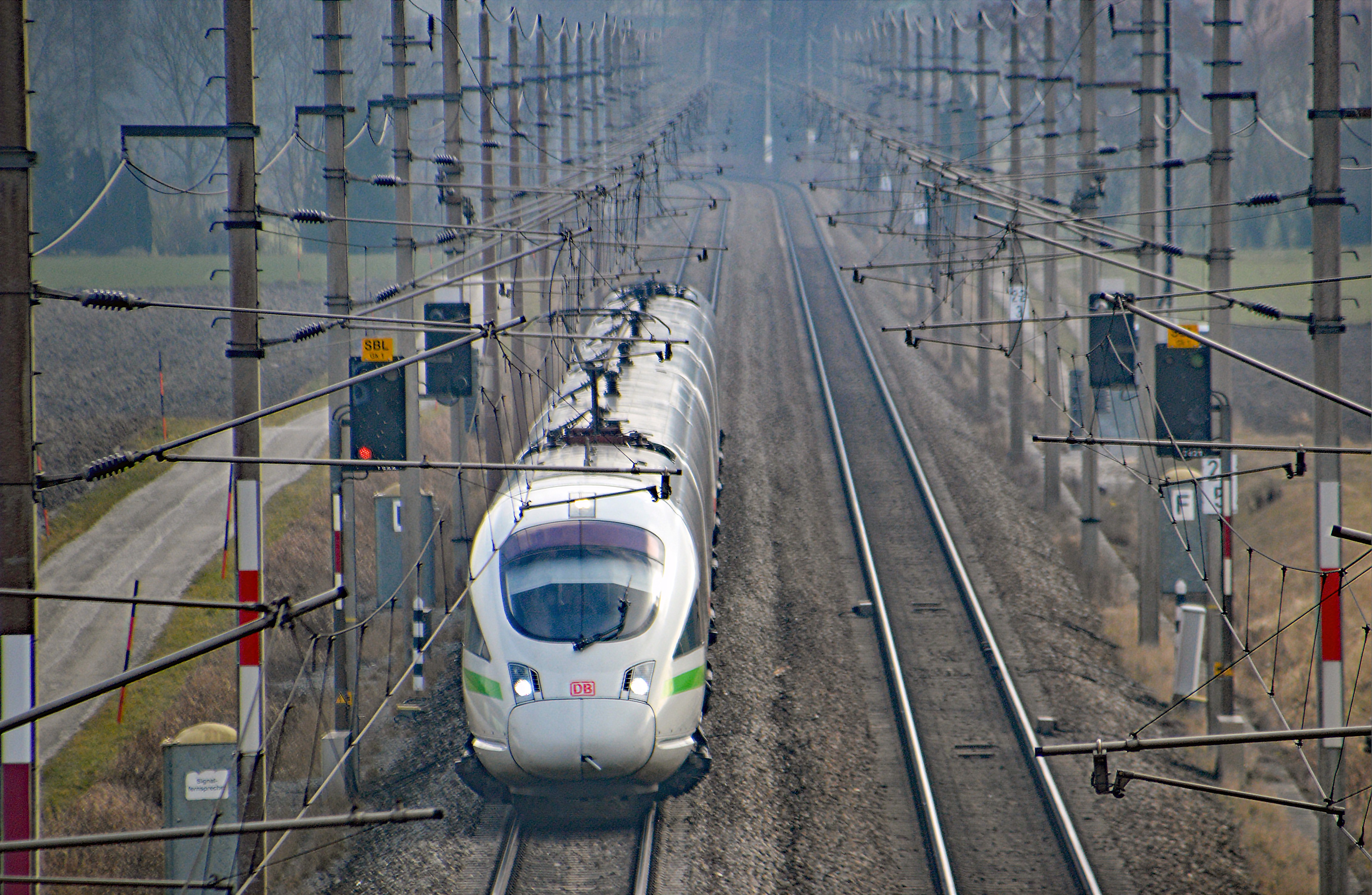 ICE-Zug zwischen Passau und Wels in Maximiliansau bei Grieskirchen auf zweigleisiger elektrifizierter gerader Strecke