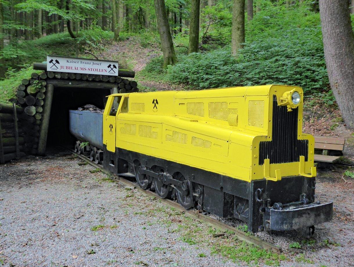 Kohlenbahn-Bahnhof Scheiben, Am Mundloch des Kaiser Franz Josef Jubiläums-Stollen kann man heute die mächtige Ruhrthaler G100Z Bj.1965 bewundern.