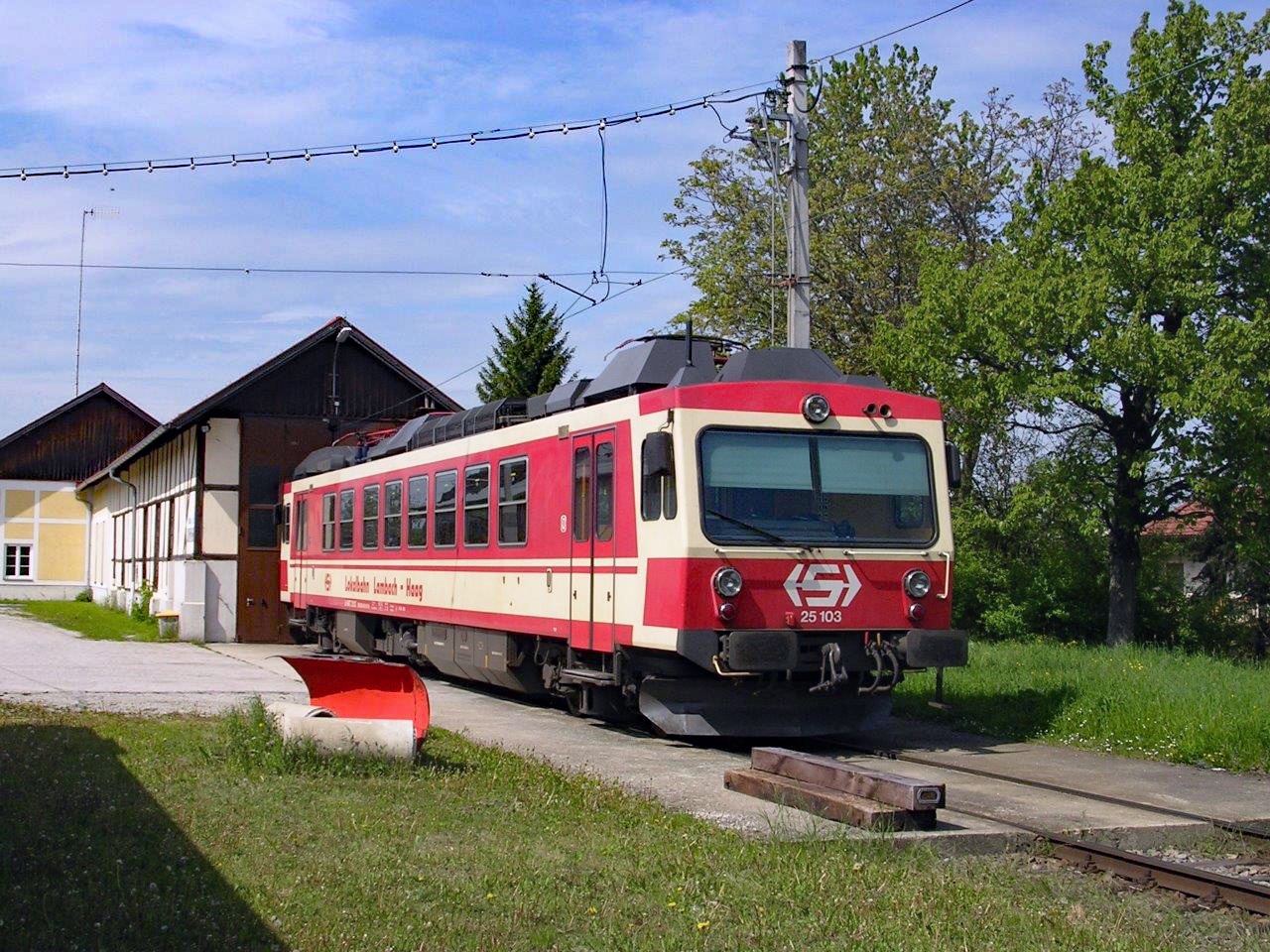 Bahnhof Haag am Hausruck, Bis 2009 sah es dort so erfreulich aus, modere Zweisystemtriebwagen bestimmten die letzten zwei Jahrzehnte das Bild der Lokalbahn nach Haag, hier der ET 25. 103 (Bombardier/1989).