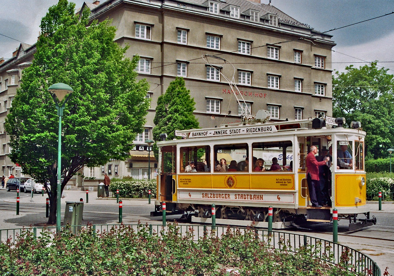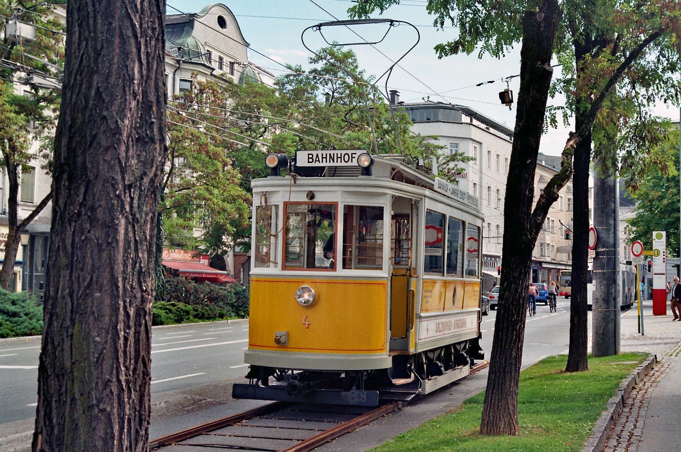 Historische Salzburger Stadtbahn zu Gast. Als besondere Attraktion befindet sich im Sommer des Jahres 2009 ein weiß/gelb lackierte...
