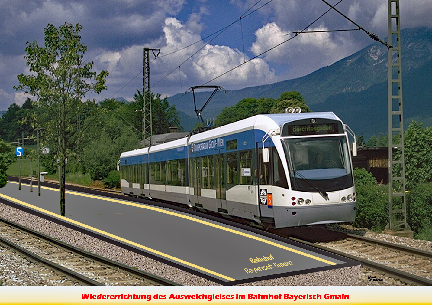 Deshalb muss jedenfalls als erster Schritt unbedingt die Erneuerung des Bahnsteigs in Bayerisch Gmain so geplant werden, dass der neue Bahnsteig ohne bauliche Änderung als Mittelbahnsteig eines künftig zweigleisigen Bahnhofs Bayerisch Gmain (wie im Bahnhof Piding nach dem Umbau 2016) verwendet werden kann. Alles andere wäre eine absolut kurzsichtige Planung. Die Bayerische Eisenbahngesellschaft (BEG), die den Schienenpersonennahverkehr in Bayern plant und bestellt, verschließt sich derzeit einer solchen zukunftsgerichteten Planung.