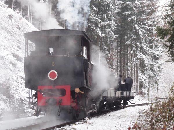 Ein Güterzug der Achenseebahn bei Erhaltungsarbeiten im Dezember 2020|Bild: G. Mackinger