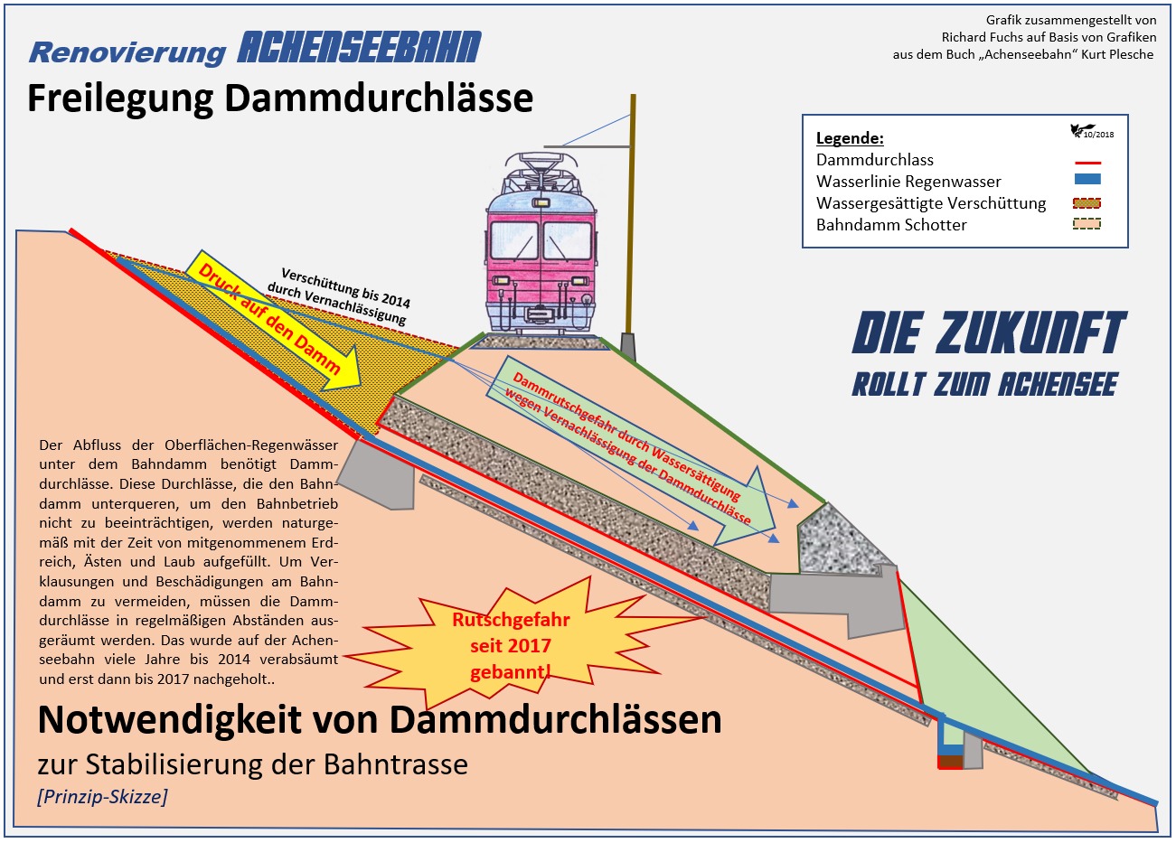 Die Zukunft war schon so greifbar nahe, wenn die Politik nicht einen Strich durch die Rechnung gemacht hätte. In der Steilstrecke wurden die Bachdurchlässe gesichert, die Elektro-Triebwagen stünden bereit, das Konzept als moderne Nahverkehrsbahn ist unmissverständlich, nur die Tiroler Politiker haben den gesetzlich vorgesehenen Geldhahn abgedreht und den Konkurs bevorzugt!