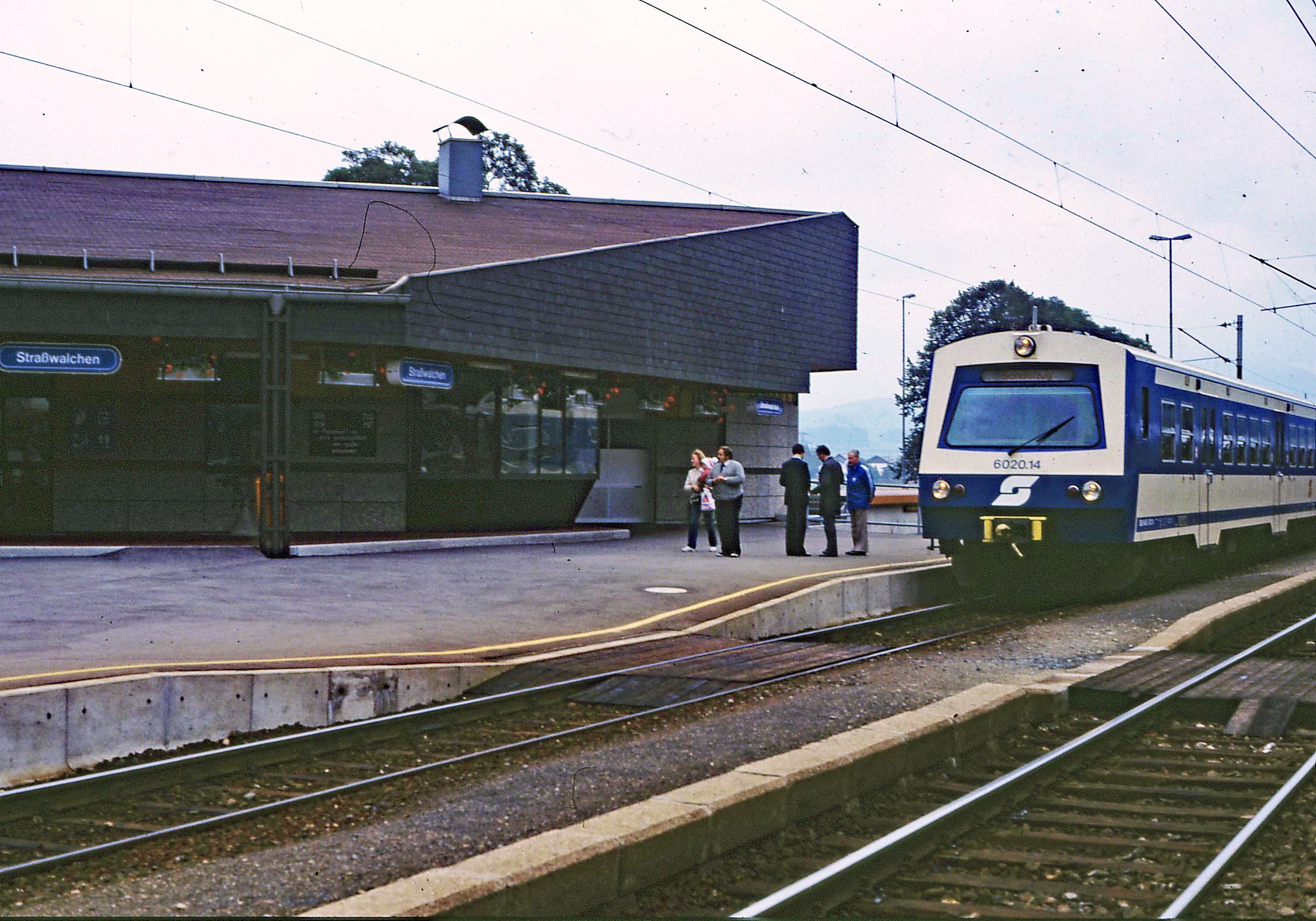 Der historische Bahnhof Straßwalchen kurz vor dem Abriss mit typischen Westbahn-Stuckbögen über den Fenstern. Der historische Kaiserjagdbahnhof wurde 1982 abgerissen. Die Gemeinde Strasswalchen wollte ein Heimat- und Kulturhaus daraus machen, die ÖBB wollten das allerdings nicht und rissen den wertvollen Bahnhof kurzer Hand ab.