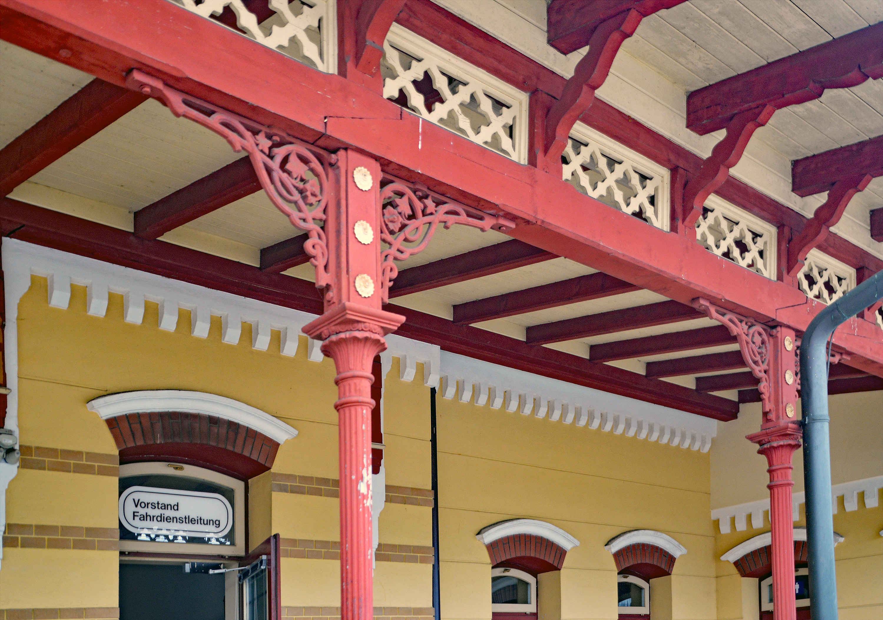 Fries am Bahnsteig-Vordach Bahnhof Timelkam