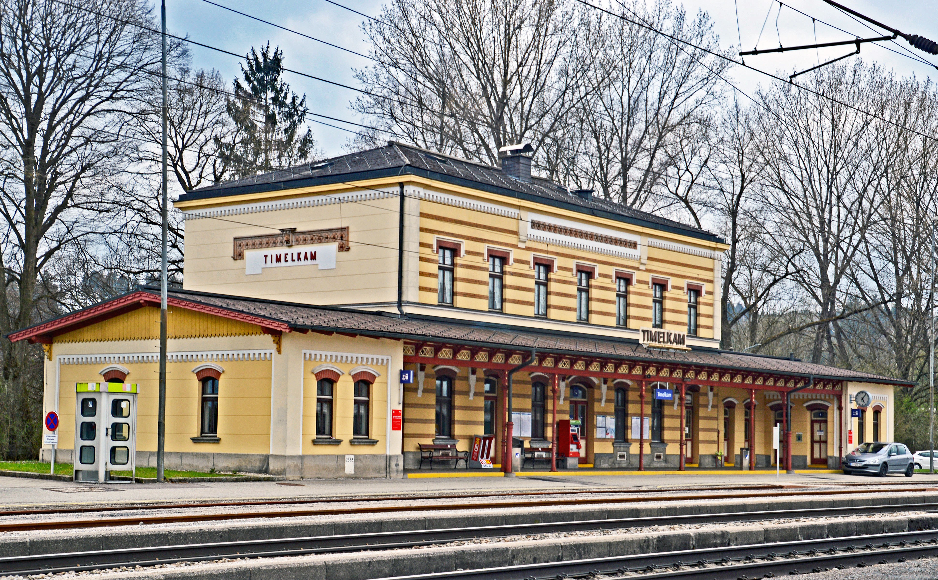 Der Bahnhof Timelkam im Ortsteil Leidern, neben dem Kraftwerk, ist ein historisch wertvolles Gebäude, weil es, zusammen mit dem Bahnhof Breitenschützing, als Musterhaus für die Bahnhöfe der slowenischen Südbahn-Strecken errichtet wurde.