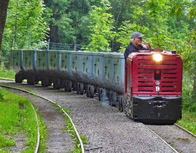 Lokpark Ampflwang Erlebnisspielplatz hervorragend umgesetzte Grubenbahn als Erlebnisbahn für Kinder mit Loren, Drehscheiben und Stollen