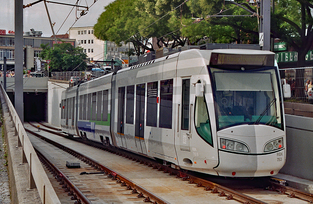 RegioTram Kassel bei der Tunnelausfahrt unter dem Hauptbahnhof bei der Verknüpfung von Eisenbahn und Straßenbahn