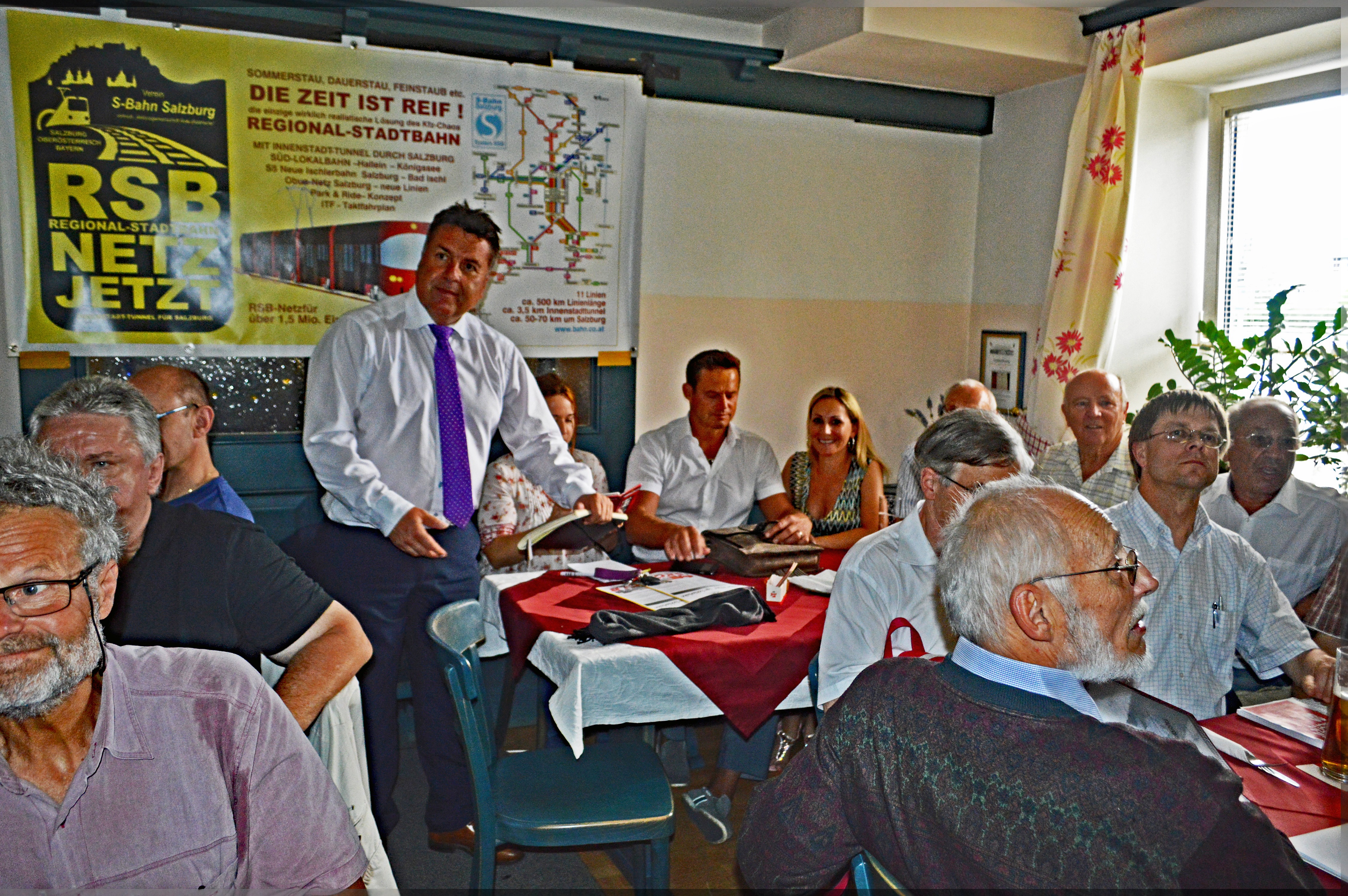 der damals noch „Verein S-Bahn Salzburg“ hieß, in einem Vereinsabend, zusammen mit LAbg. Otto Konrad und seiner Frau Silke. Ihm folgte der Landesrat Stefan Schnöll, der von der ersten Minute an klarmachte, wohin seine Verkehrspolitik geht. Er setzt klar auf das Projekt „Regionalstadtbahntunnel“ durch die Stadt Salzburg. Er ist der erste Politiker, der eindeutig den Eindruck vermittelt, dieses Projekt Regionalstadtbahn wirklich, mit innerer Überzeugung, zu wollen!