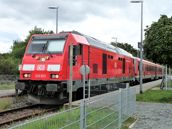 Während auf der nördlichen Bayerischen Tauernbahn Mühldorf - Landshut seit längerer Zeit vor planmäßigen Zügen die modernen dieselelektrischen Loks der Baureihe 245 beobachtet werden können (siehe hierzu im Buch „Die Bayerischen Tauernbahn“ von K. Bürger u. K. Bösenecker, Seite 187), konnte man sie bisher auf dem südlichen Abschnitt Mühldorf - Freilassing nicht antreffen. Am 6. Oktober 2021 war dies jedoch der Fall, als im Rahmen einer Überführungsfahrt die 245 003 dem planmäßigen 628er Triebwagen der RB 27985 vorgespannt war. Die Fotos zeigen das Gespann auf Gleis 1 des Bahnhofs Laufen (Obbay).