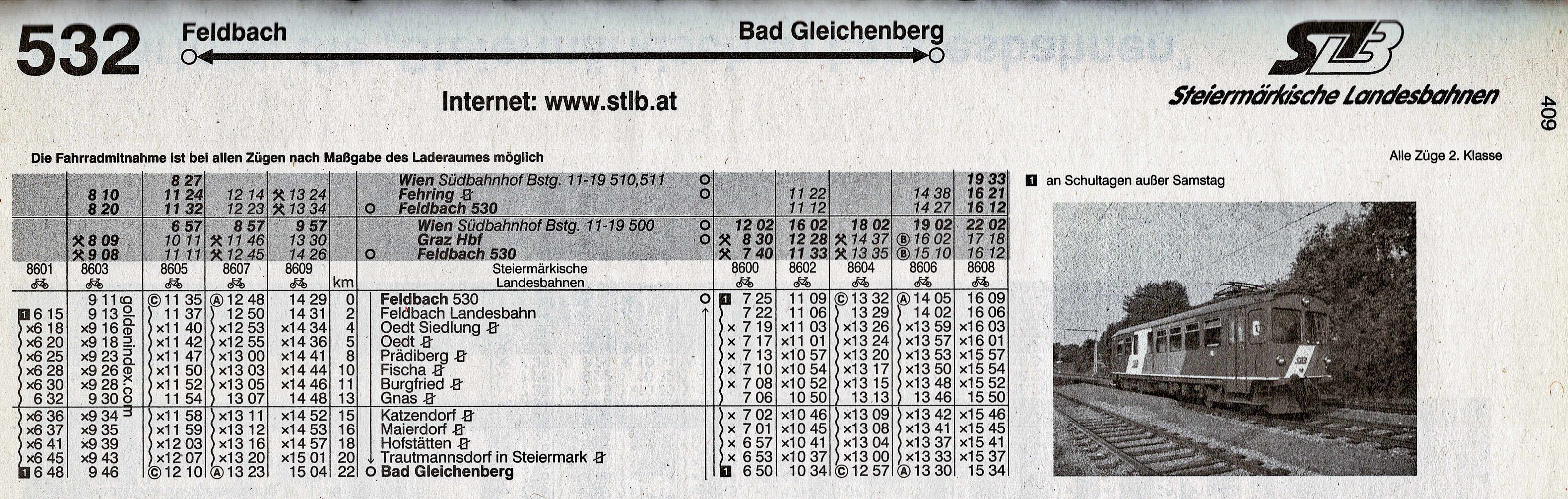 ÖBB-Kursbuch 2006 KB-Nummer 532 Feldbach - Bad Gleichenberg mit Fahrzeit 35 Minuten!