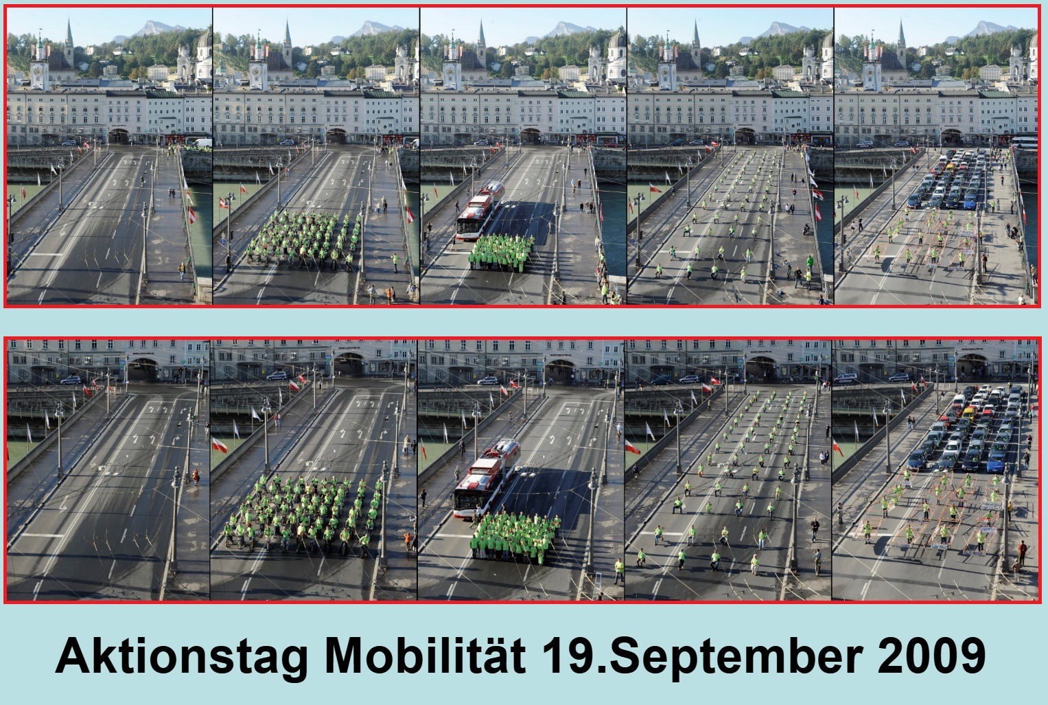 660 Fahrgäste - Leistungsfähigkeit der Verkehrssysteme Platzvergleich auf der Staatsbrücke in Salzburg, am 19.09.2009