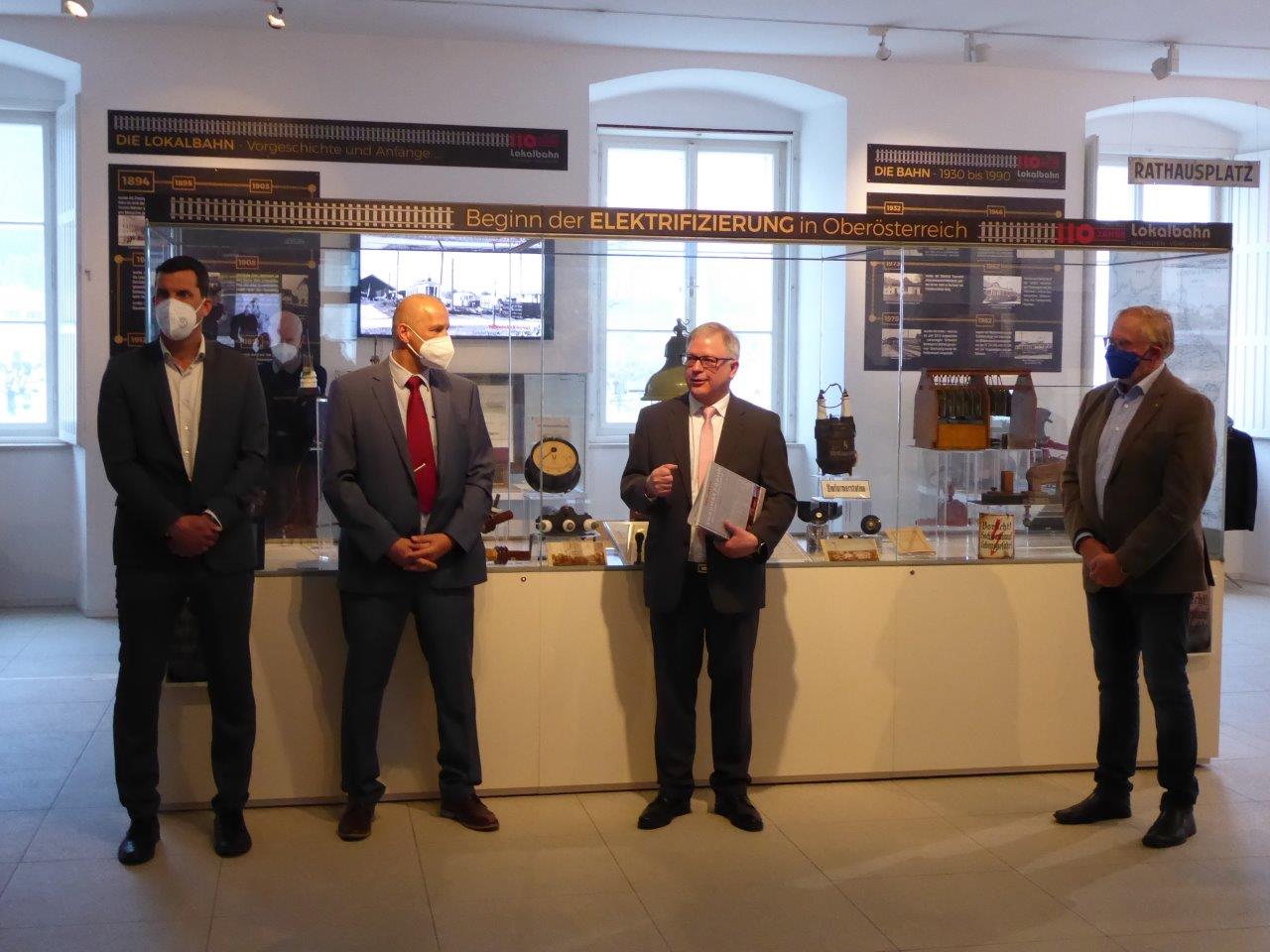 Als erste Veranstaltung im Festreigen um das Jubiläum "110 Jahre Lokalbahn Gmunden - Vorchdorf" eröffnete das Kammerhof Museum Gmunden - im Stadtzentrum nahe dem Rathausplatz gelegen - am 8.April 2022, in Anwesenheit von viel lokaler Prominenz, eine informative Ausstellung zur Geschichte dieser meterspurigen Lokalbahn.