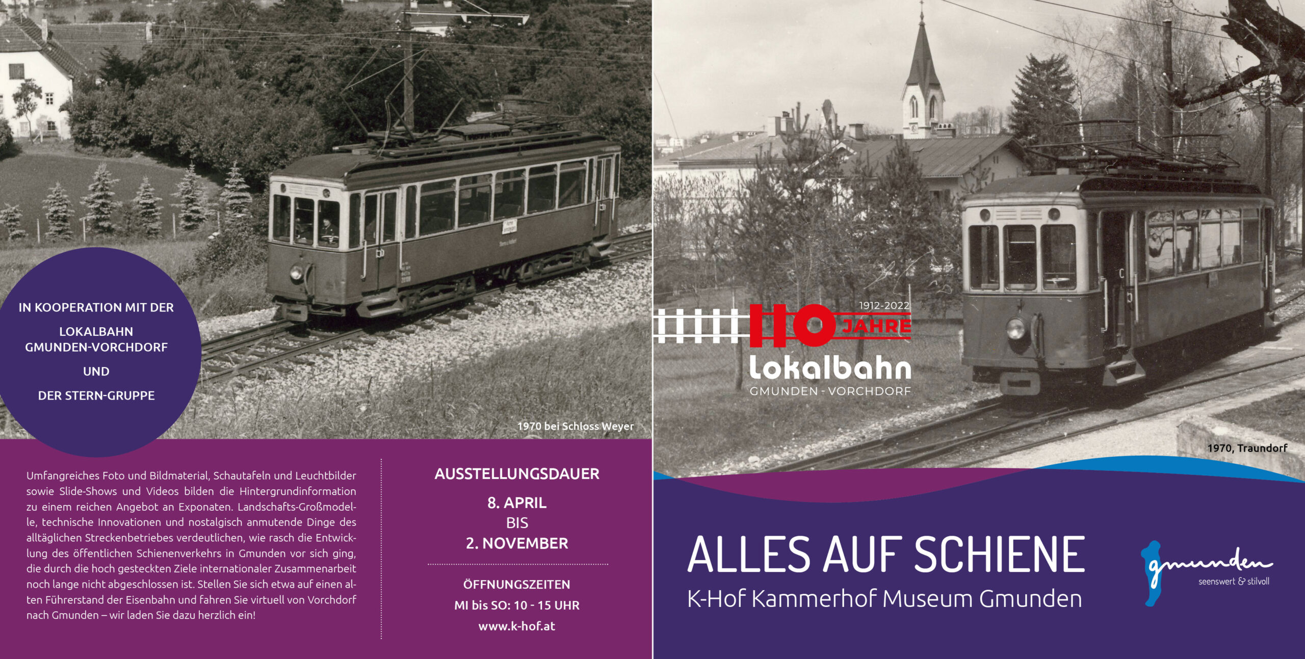 Von 08.04.2022 bis 02.11.2022 findet im Kammerhof Museum Gmunden eine Sonderausstellung zum Thema "110 Jahre Lokalbahn Gmunden - Vorchdorf" statt. Mittwoch bis Sonntag zwischen 10 und 15 Uhr kann Geschichte erlebt werden.