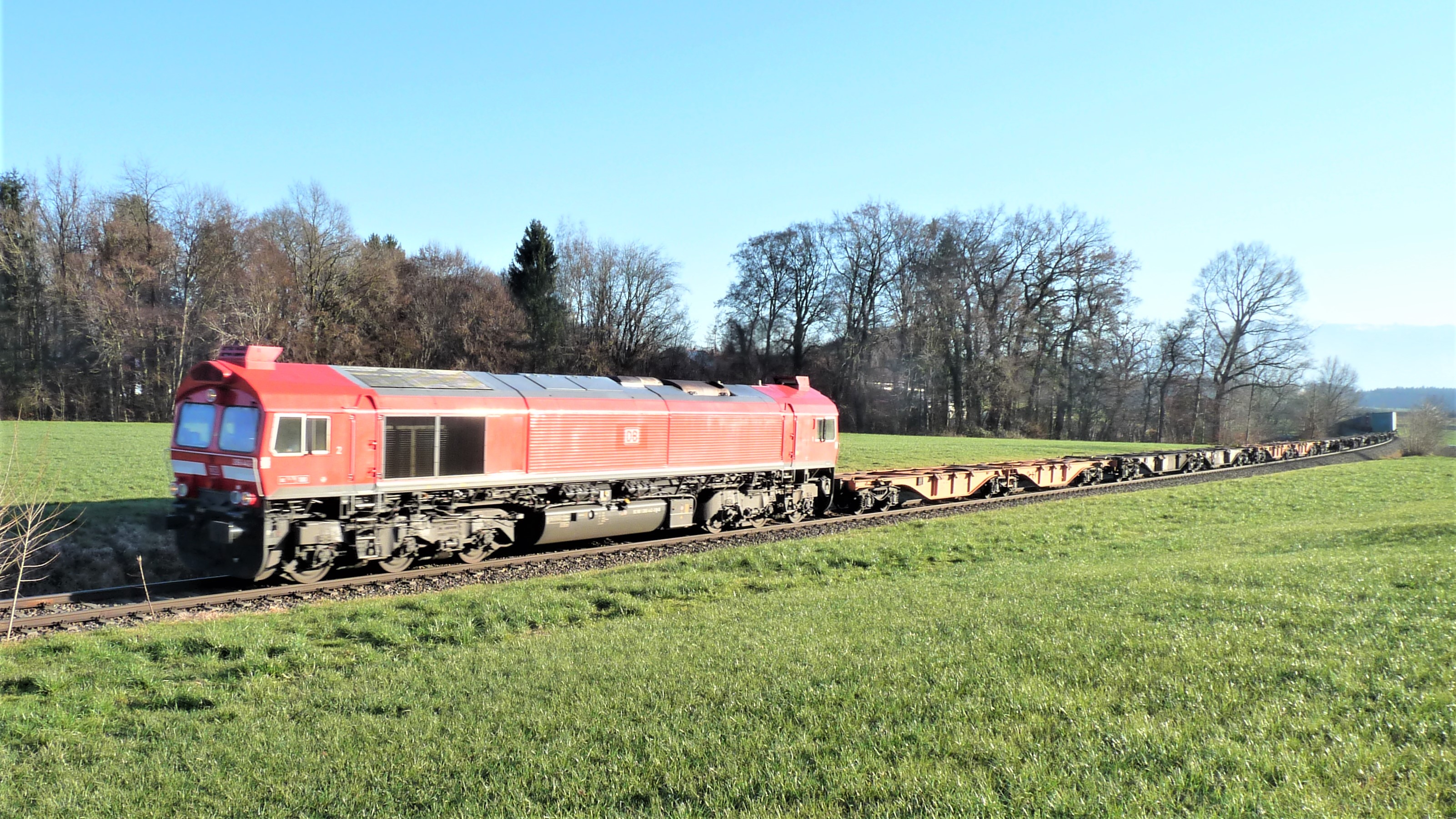 Containerzug zwischen Lepperding und Gastag. Müllzug und Containerzug kreuzen sich im Bahnhof Fridolfing.