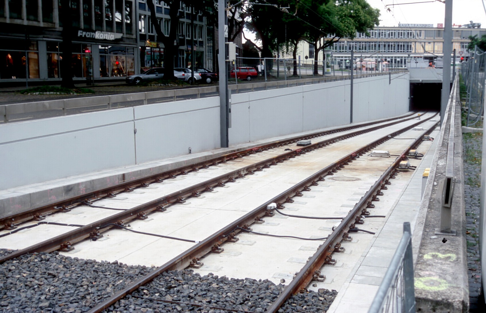 Die RegioTram genannte Regionalstadtbahn Kassel fährt unter dem Hauptbahnhofsgebäude von den DB-Eisenbahnstrecken ins innerstädtische Bahnnetz.