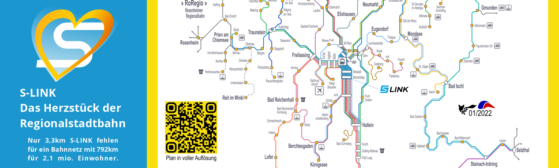 Das Projekt S-LINK wird fortgeführt. Die vorgeschlagene unterirdische Trasse (Variante 108 A) vom Lokalbahnhof bis zur Akademiestraße wird gutgeheißen. Gemäß bestehender Finanzierungsvereinbarung mit Bund und Land beteiligt sich die Stadt mit 50 Millionen Euro (= 25 % von gesamt 200 Millionen) bis zum Mirabellplatz.