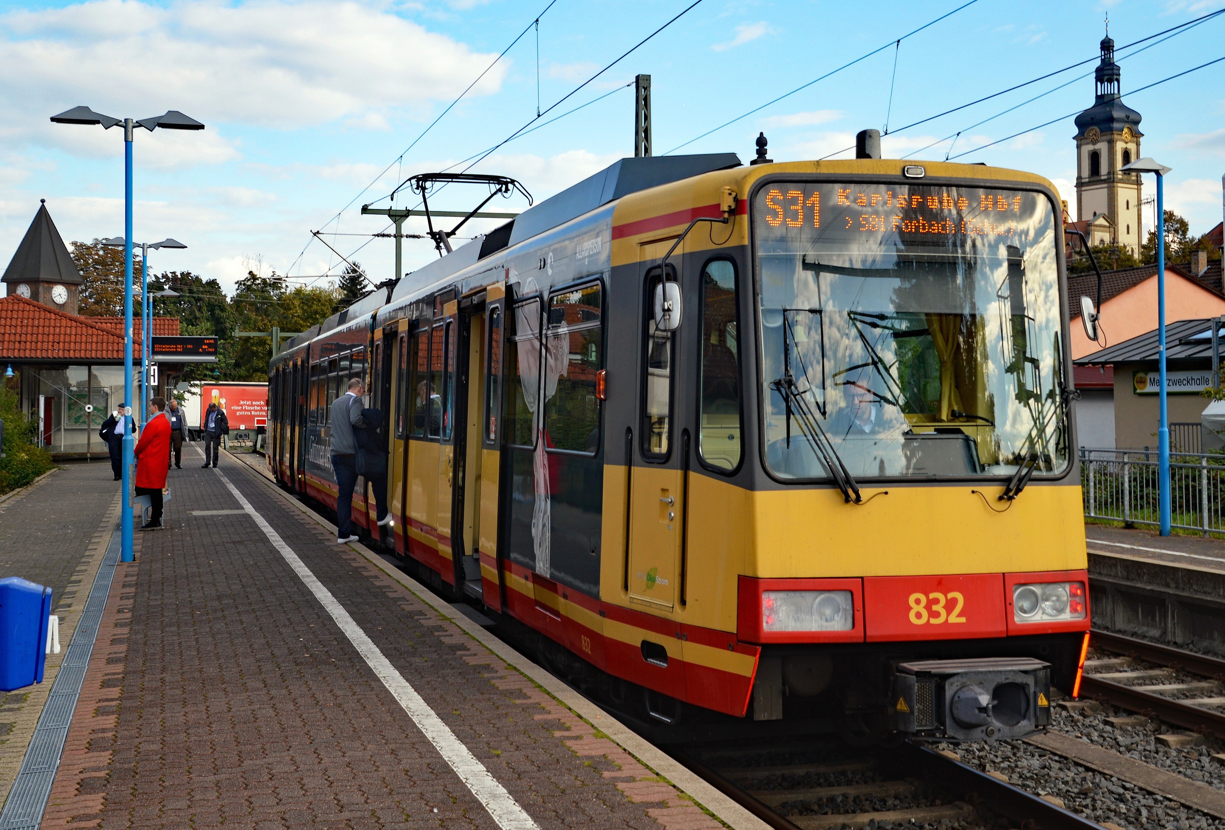 Zwischen Bruchsal, Ubstadt und dort mit der Abzweigung einerseits bis Menzingen und andererseits bis Odenheim, fuhren früher die NE-Dieseltriebwagen der SWEG Südwestdeutsche Eisenbahn-Gesellschaft, heute Südwestdeutsche Landesverkehrs-AG, auf den sonst üblichen beschaulichen Regionalbahn-Strecken. Heute fahren wir mitten aus dem Karlsruher Hauptbahnhof mit einem Zweisystem-Stadtbahntriebwagen auf der Linie S31/S32 über die internationale ICE-Strecke, im Mischbetrieb mit den ICE-Zügen, bis nach Bruchsal und von dort weiter nach Ubstadt.