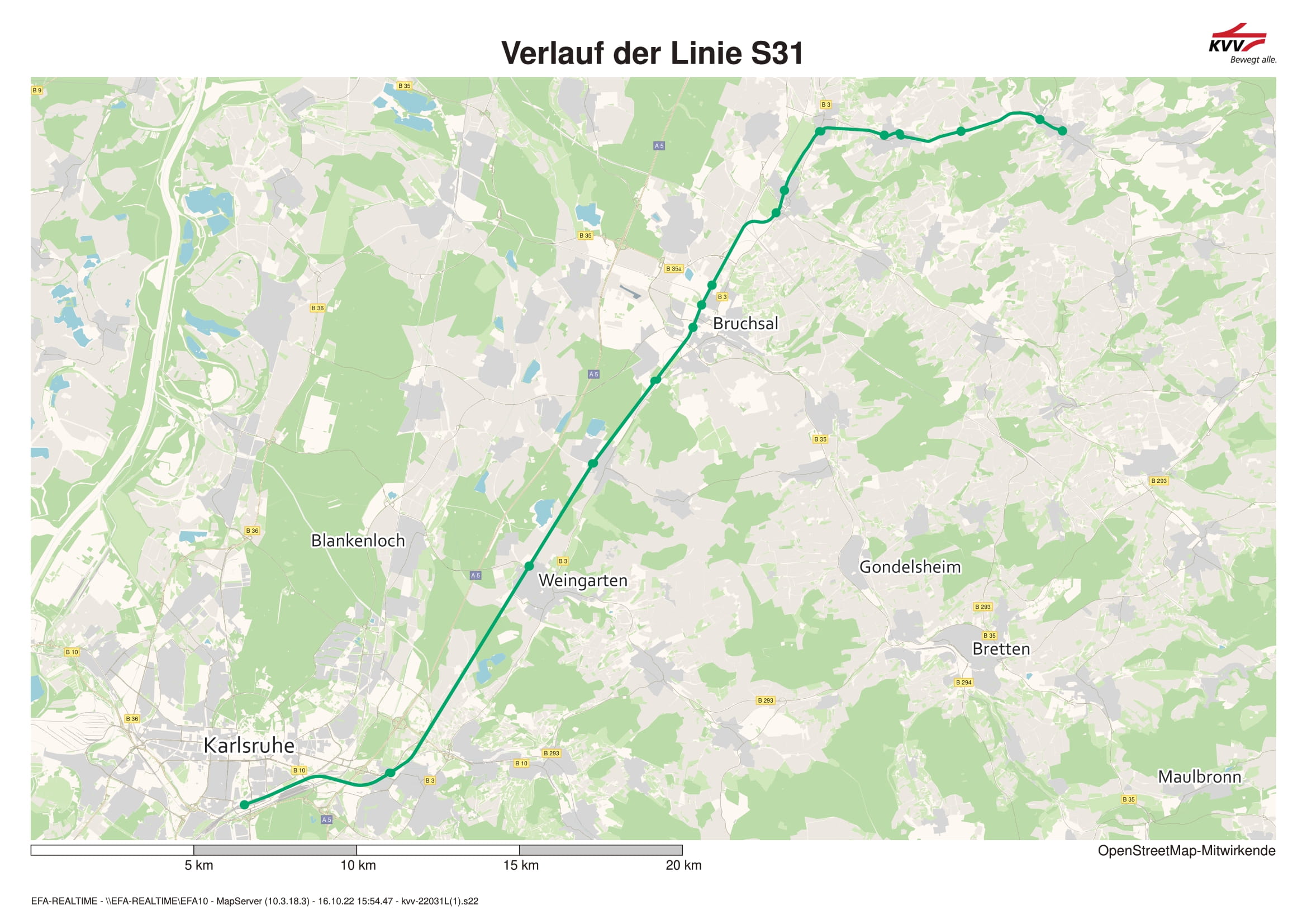 Plan Katzbachbahn S31 Karlsruhe - Bruchsal - Odenheim/Menzingen