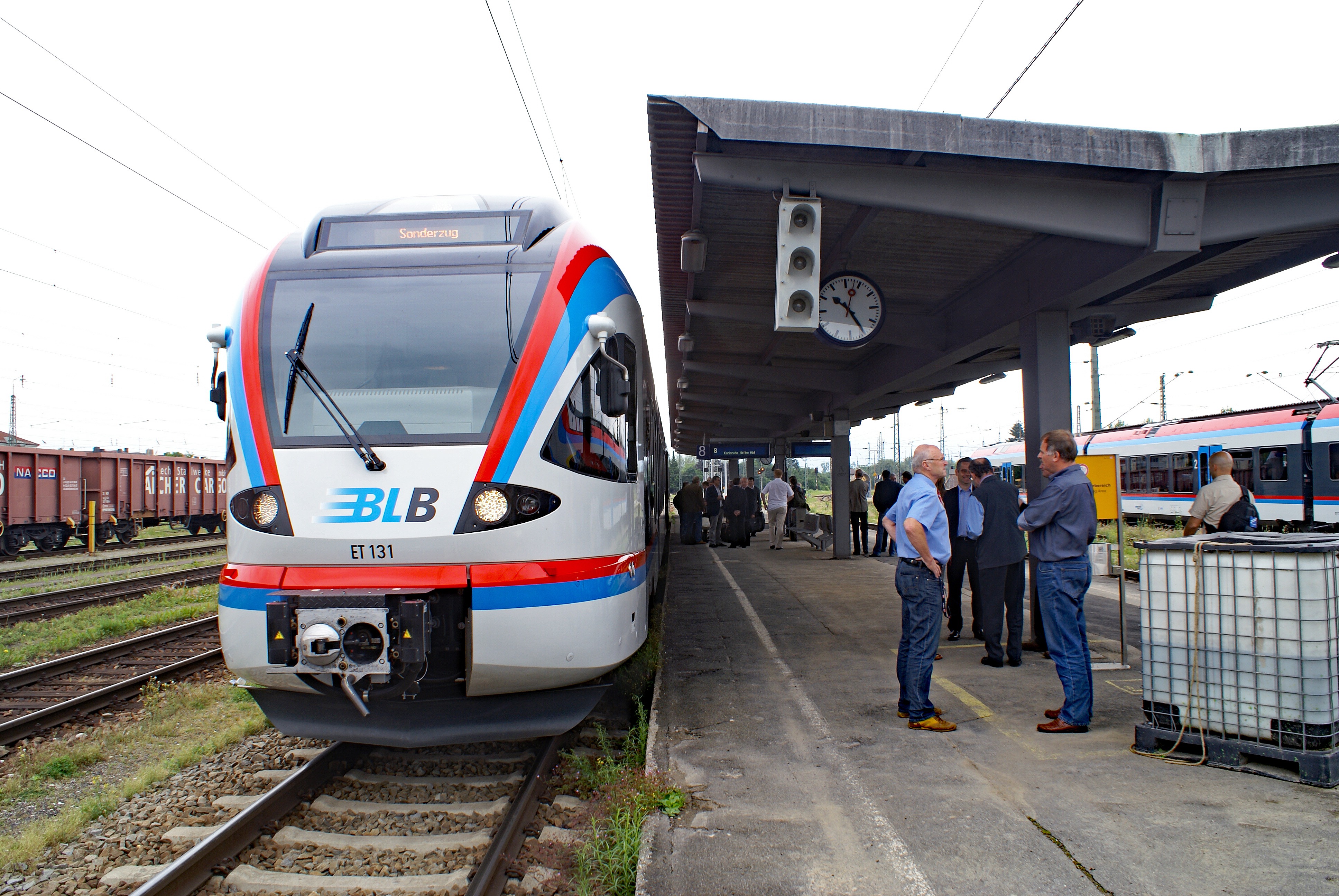 ET 131 der Berchtesgadener Land Bahn als Sonderzug abfahrbereit in Freilassing für Fahrt nach Karlsruhe Hauptbahnhof