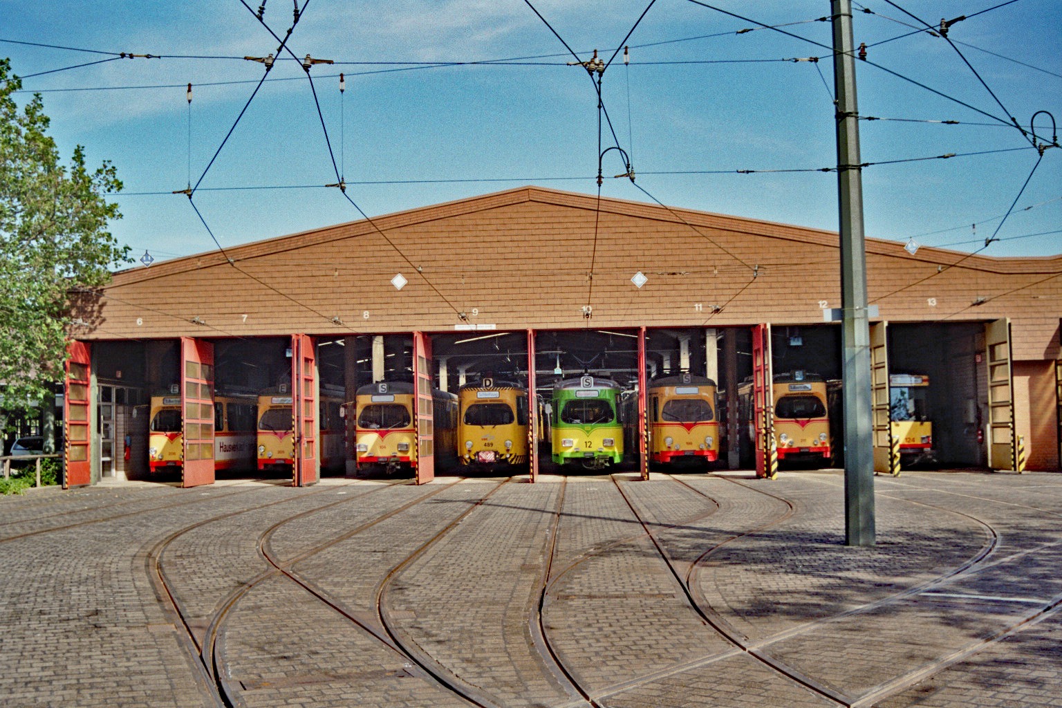 Fahrzeugparade der historischen Triebwagen von Waggon-Union in der Remise Tullastraße.