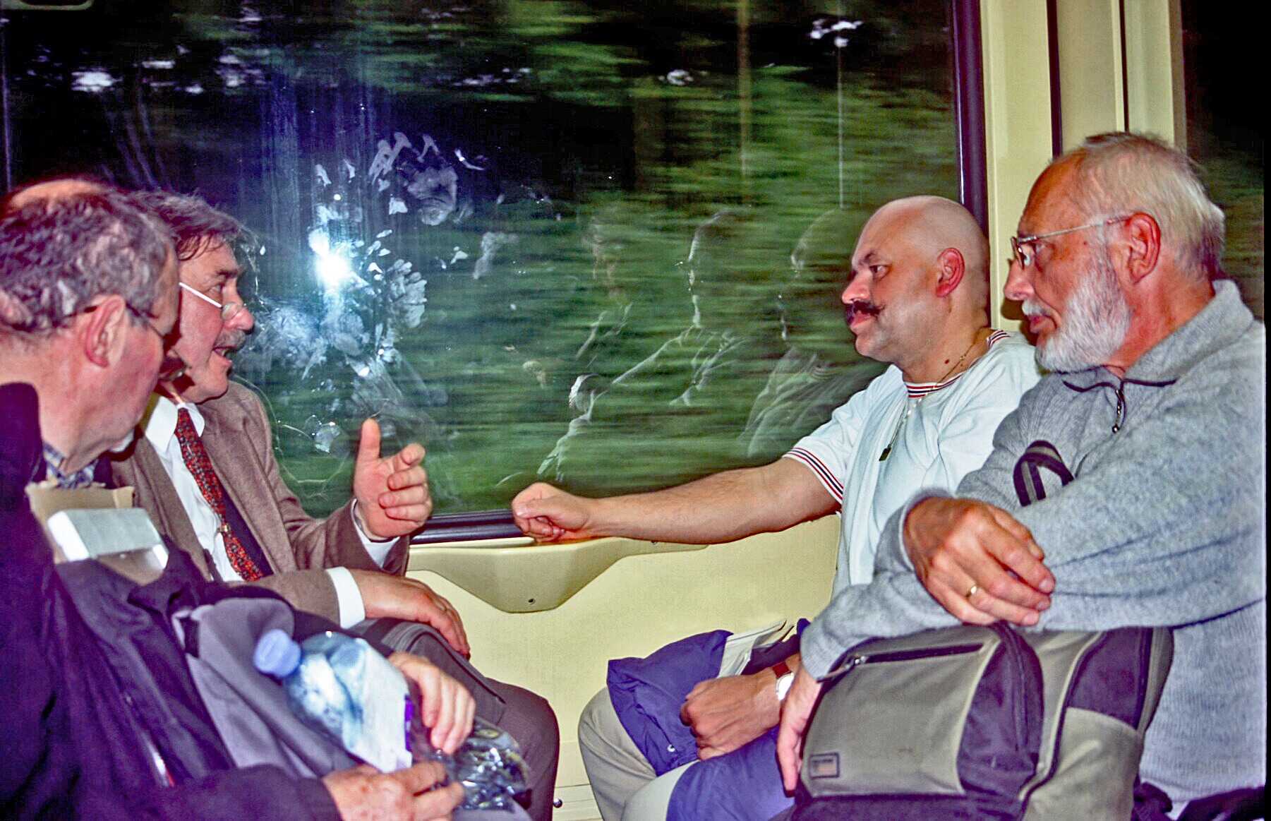 Gruppe der Horber Schienentage 2005 im Gespräch mit Horst Emmerich und Dr. Gerhard Schnaitmann vom Nahverkehr Baden-Württemberg re.