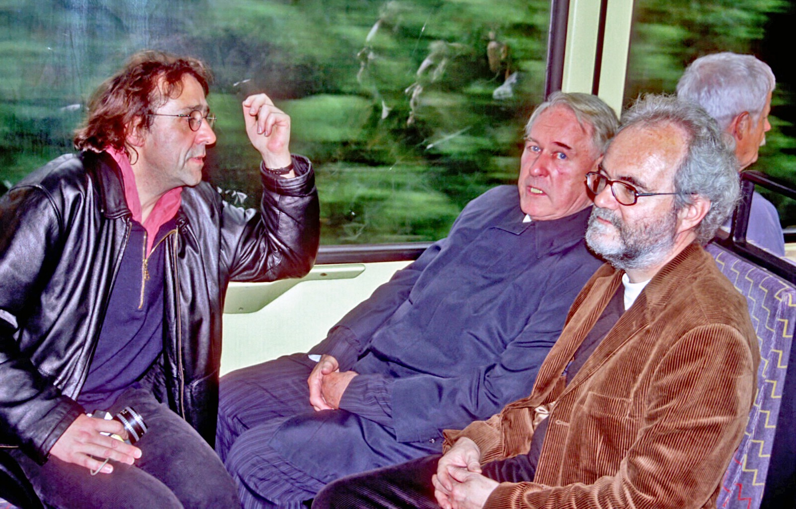 im Zug Peter Scheidsach † Verkehrssprecher Landkreis Berchtesgadener Land, Ing. Horst Speer † Aktionsgemeinschaft Rote Elektrische, im Hintergrund Dipl.-Ing. Gernot Haider Land Oberösterreich.