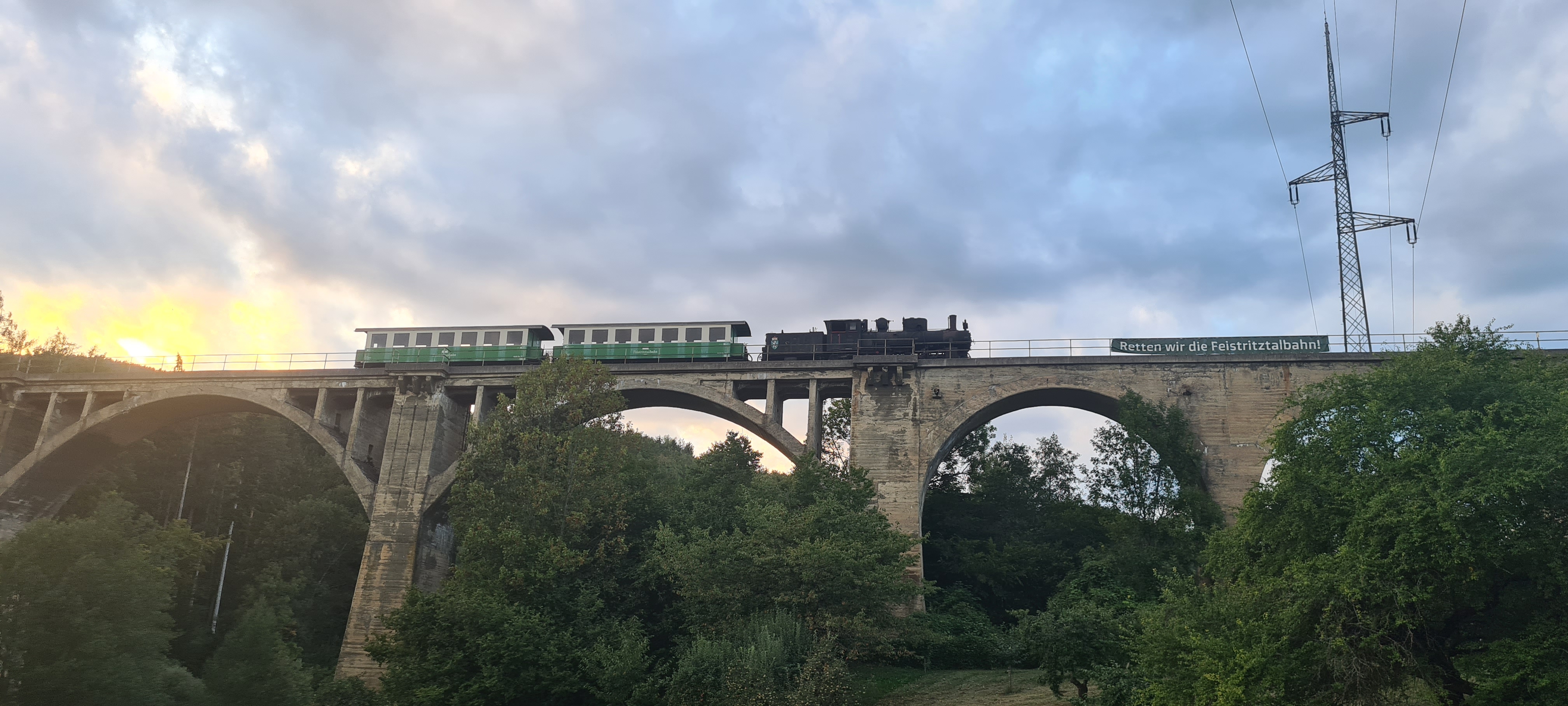 Am 02.09.2022 war auf dem Grub-Viadukt noch ein Plakat "Retten wir die Feistritztalbahn!" zu sehen, Ortsbekannte Gegner hab dieses dann im Schutz der Dunkelheit demontiert.
