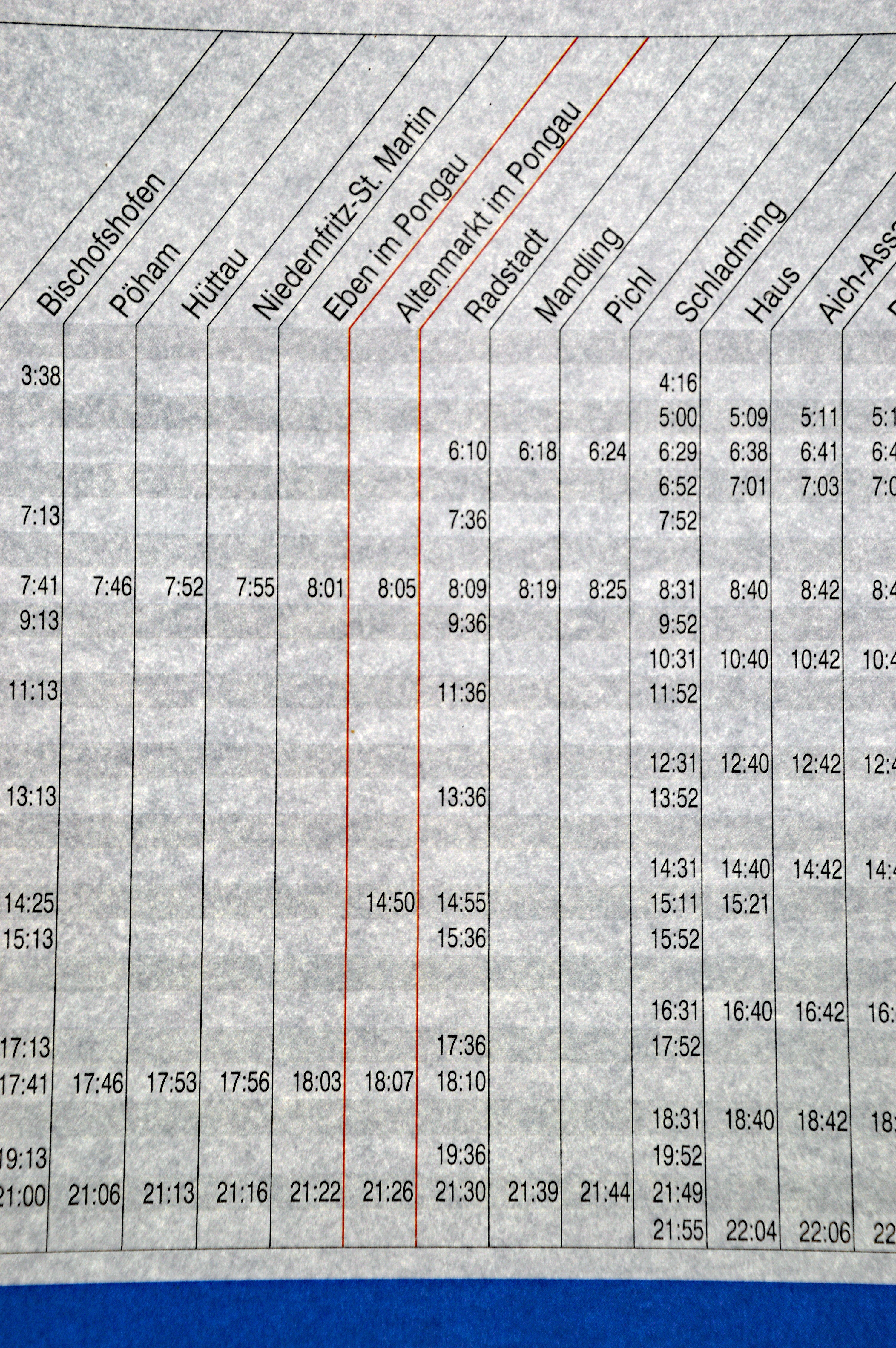 Die Bilder zeigen die Fahrpläne aus Altenmarkt im Jahr 2022. Mit Fahrplanwechsel 22/23 soll es nun mehr Zugverbindungen geben, man wird sehen ob man die Fahrgäste mühsam wieder zurück gewinnen kann.