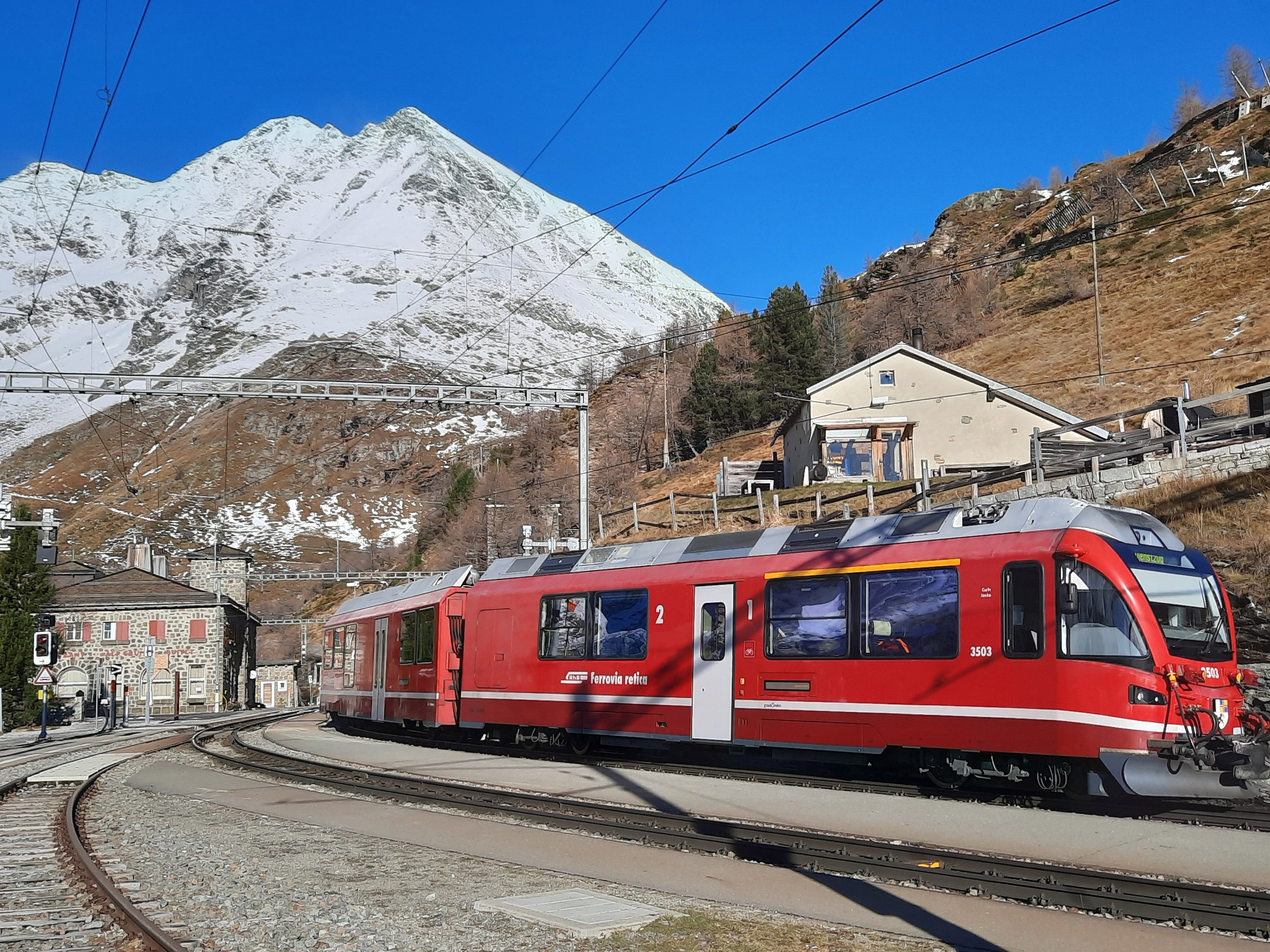Die Rhätische Bahn lässt Eisenbahnherzen höherschlagen. Die Strecke zählt zu den schönsten der Welt, die Berninalinie und Albulalinie sind sogar UNESCO Welterbe. Neben der malerischen Landschaft faszinieren die technischen Anforderungen. Typisch für die Meterspurstrecke sind Bögen bis zu 45 m Radius und Neigungen bis 70 ‰.