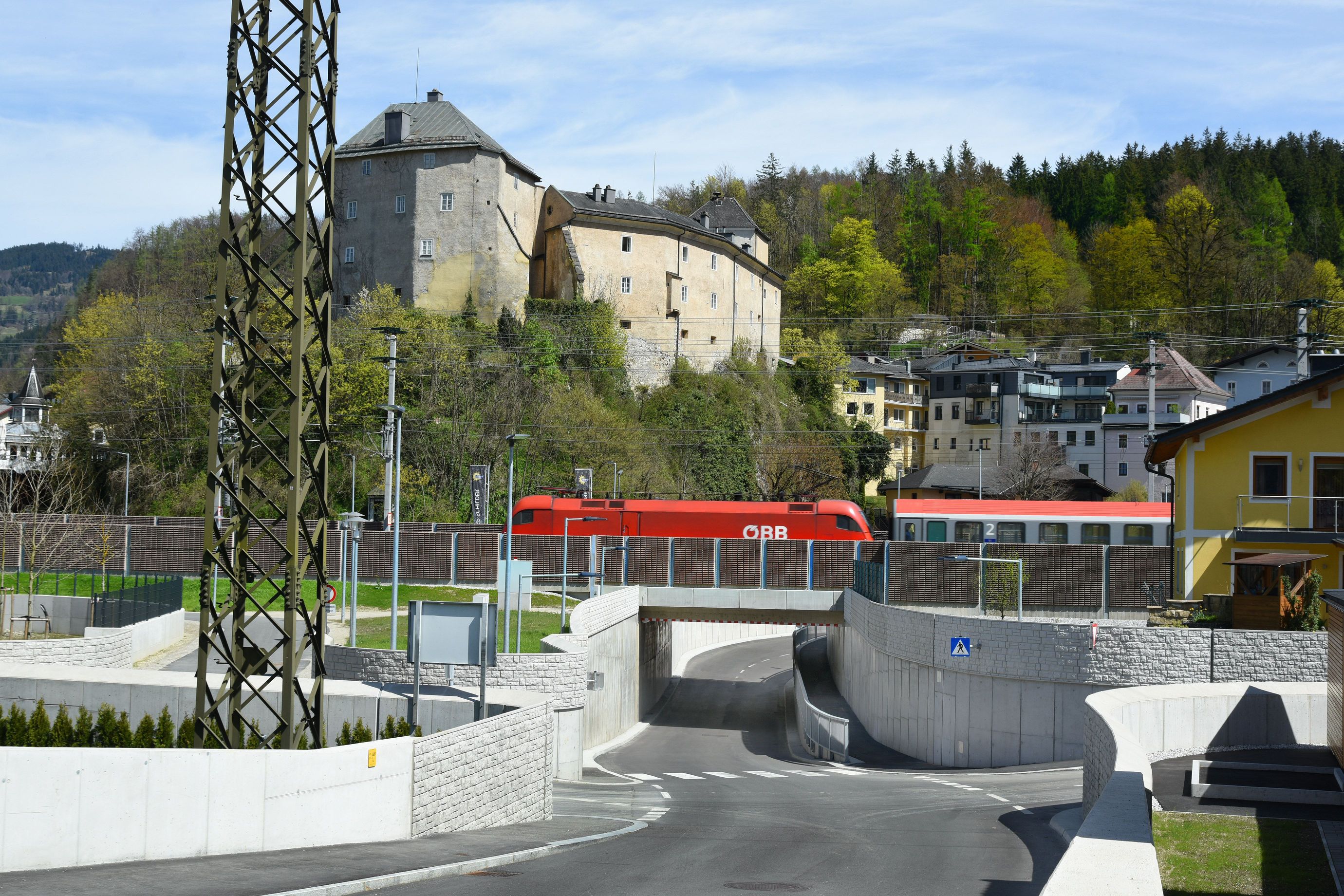 Zwei neue Unterführungen erhöhen künftig die Verkehrssicherheit in Golling. Die neue Unterführung Wasserfallstraße ersetzt die bisherige Eisenbahnkreuzung im Ortszentrum. Dadurch wird der Verkehrsfluss in der Gemeinde wesentlich verbessert.