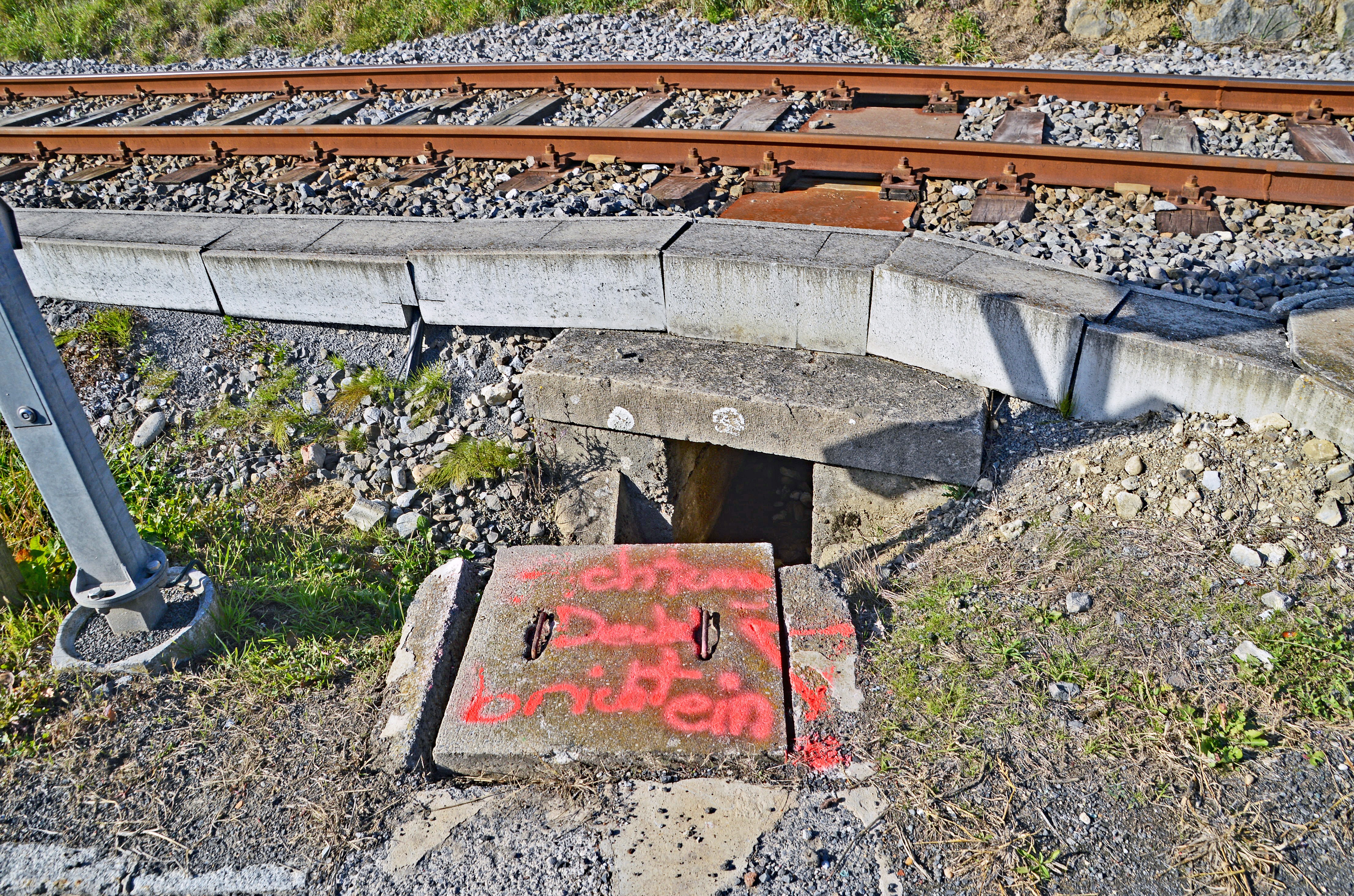 Es hat den Anschein, dass sich niemand um die Dammsicherung und um den Hochwasserschutz kümmert. Leicht zugänglich sind einsturzgefährdete Kanaldeckel!