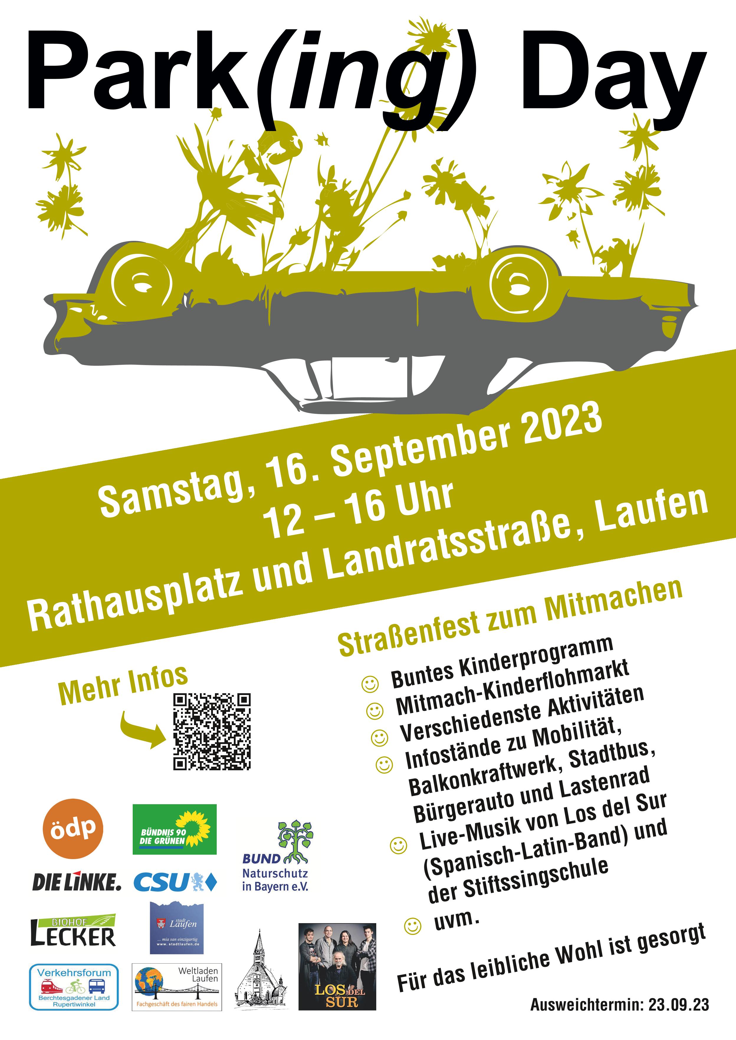Kommt vorbei zum STRASSENFEST der Mobilität. Samstag, 16. September 2023; wo: Rathausplatz und Landratsstraße, Laufen; wann: 12 - 16 Uhr (bei Regen: 23.9.23, 12 - 16 Uhr) - Verschiedenste Aktivitäten und Angebote für ALLE ...