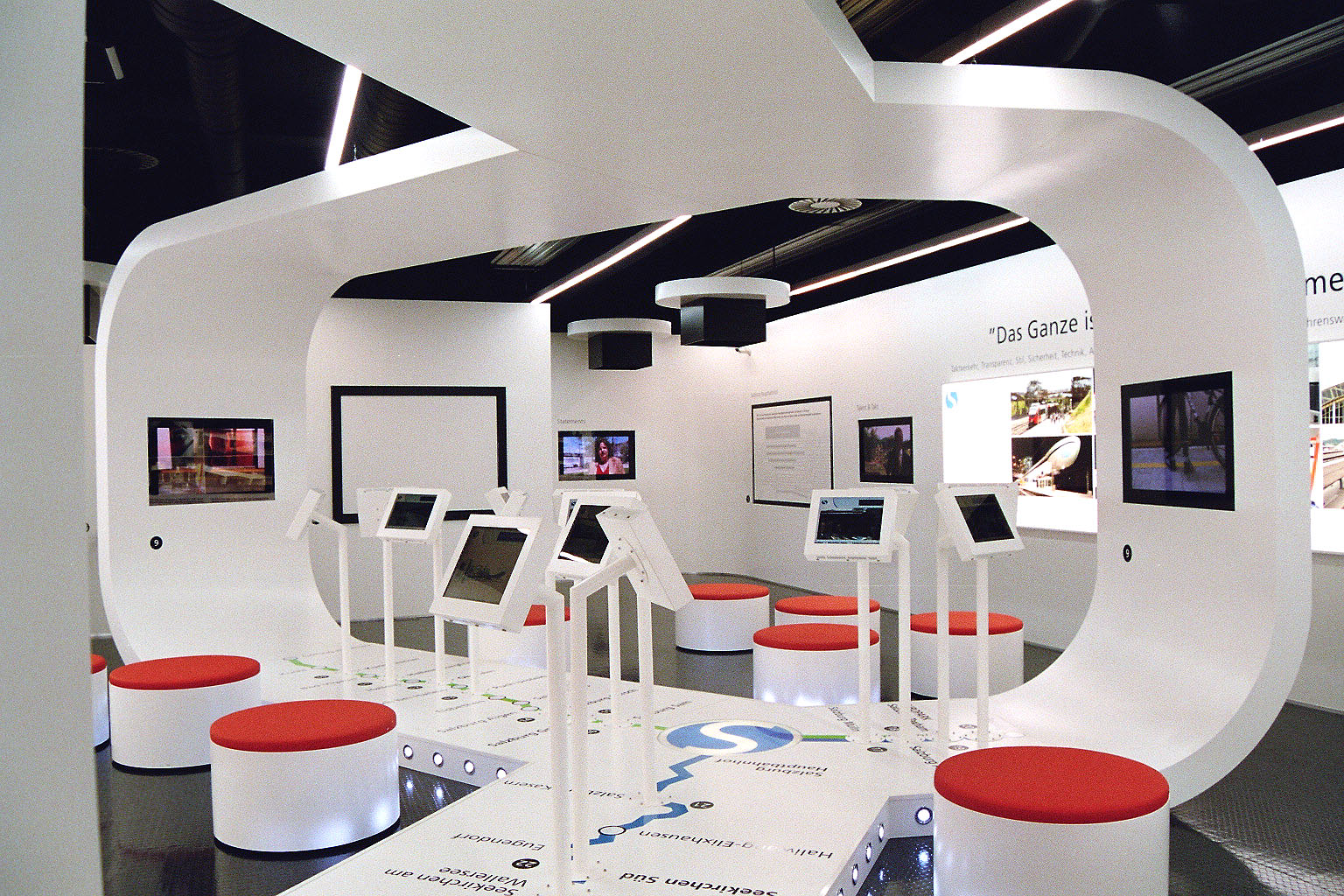 ÖBB-Info-Box S-Bahn Salzburg Mülln am Salzach-Kai für die Präsentation des Ausbaues des Drittes Gleises Richtung Freilassing
