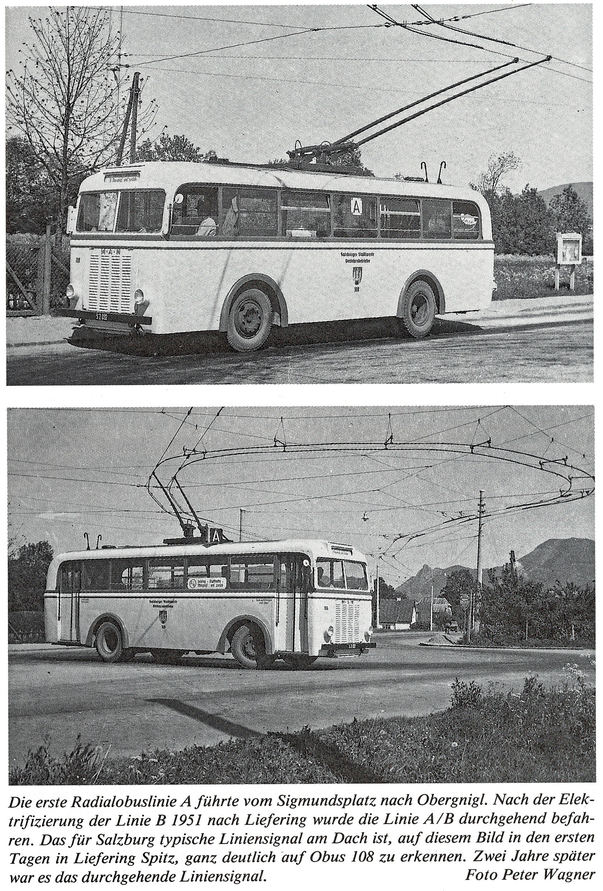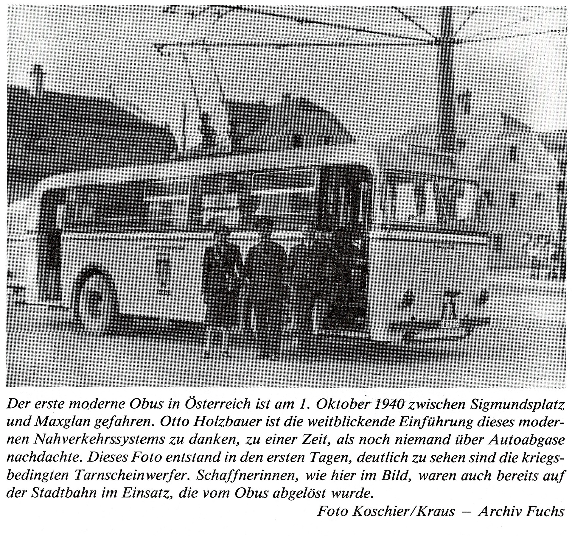 Erst als die Straßen befestigt und die Obusse Luftreifen erhielten, kehrte eine neue Ära der Elektromobilität in der Stadt Salzburg ein. Otto Holzbauer, der erste Salzburger Verkehrsbetriebedirektor, entwickelte für Salzburg ein ganzes Obus-Netz und löstet damit die „Gelbe Elektrische“ 1940 ab. Auch in der autoverrückten Zeit der Eisenbahn-Zerstörungen in den 1950er-Jahren wurde der Obus ausgebaut, wobei lange Zeit der Obusdirektor Ing. Hans Teufl den Salzburger Obus modernisierte und mit den Linien 6 und 7, vorher Dieselbuslinien „P“ und „E“, sogar ausbaute.