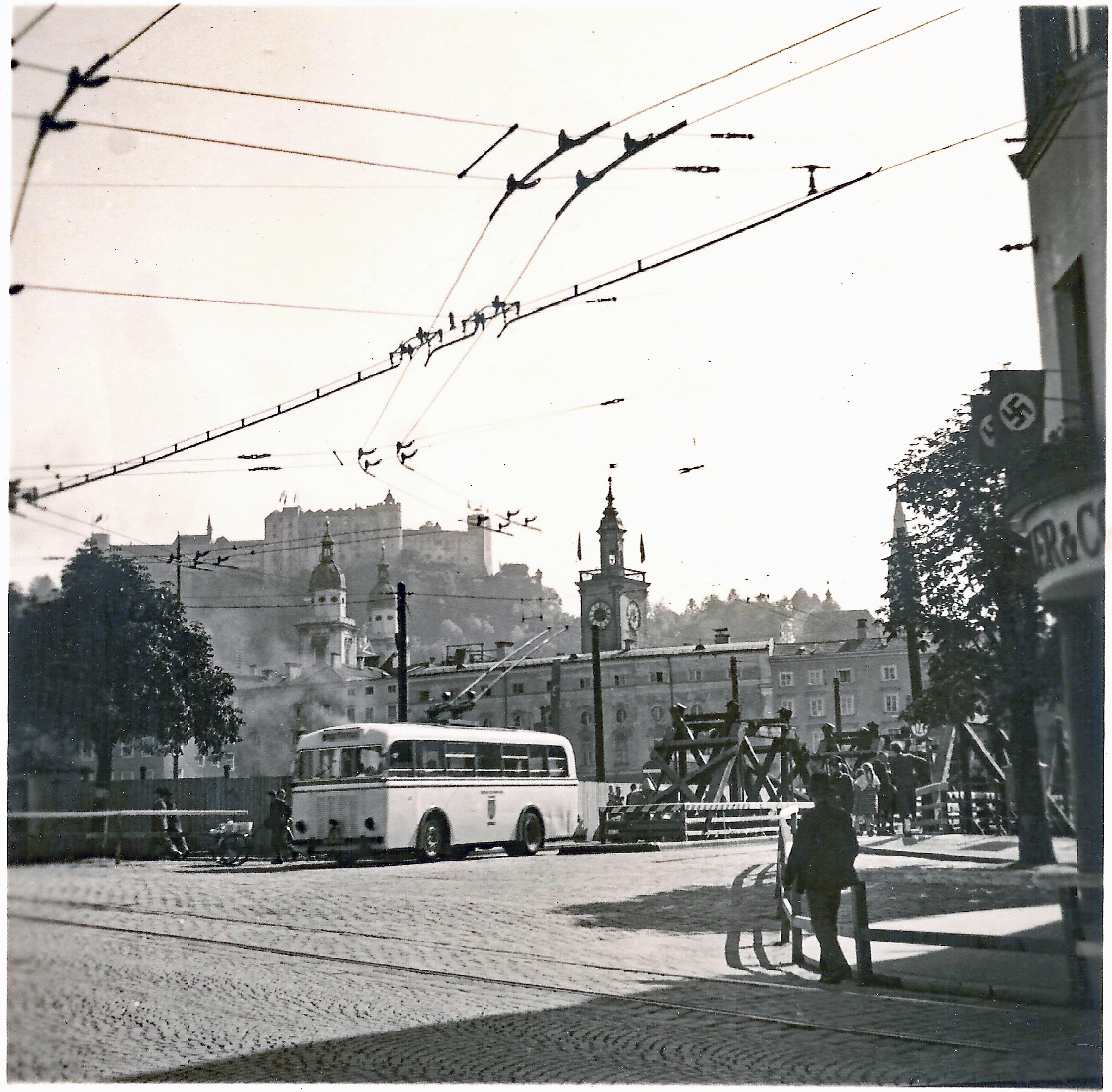 Obus-Archäologie, Am 5. November 1940 wurde die einzige Salzburger Straßenbahnlinie zu Gunsten des Obus eingestellt - Foto: Stadtarchiv Salzburg