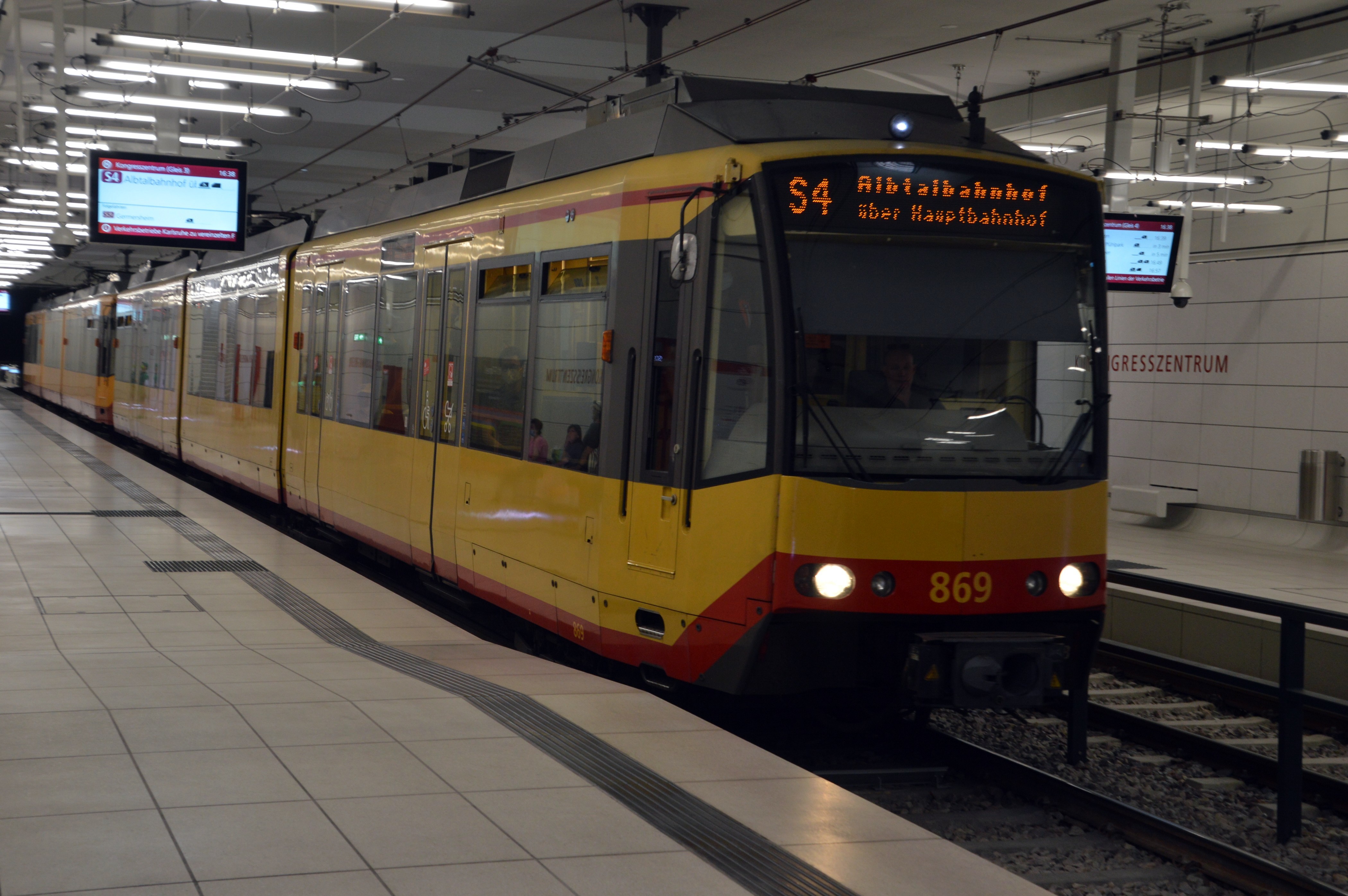 Stadtbahn Karlsruhe Triebwagen der neuesten Generation "Flexity Swift" auf der Tunnelrampe "Gottesauer Platz" stadtauswärts Richtung Durlach. Das "Karlsruher Modell" ist ein direktes Vorbild für den "S-Link" in Salzburg!