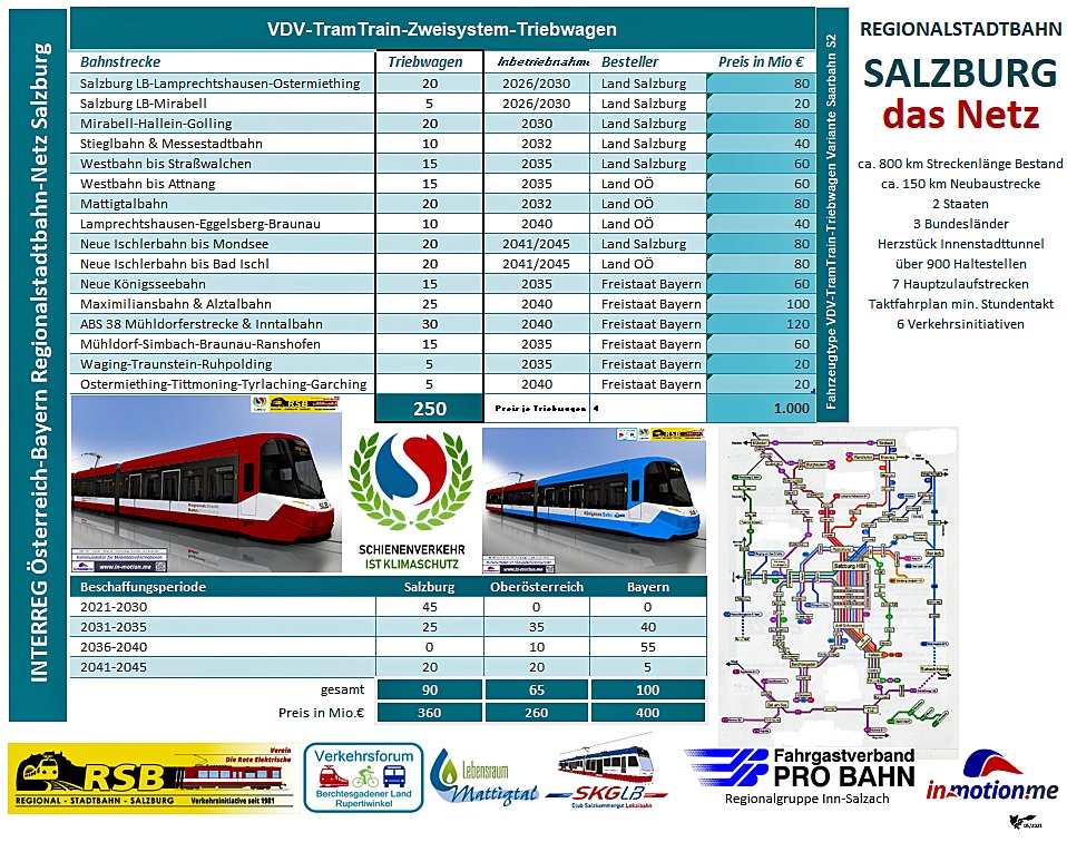 VDV-TramTrain-Zweisystem-Triebwagen im Regionalstadtbahn-Netz Salzburg Liste der zu beschaffenden Fahrzeuge je Bahnstrecke
