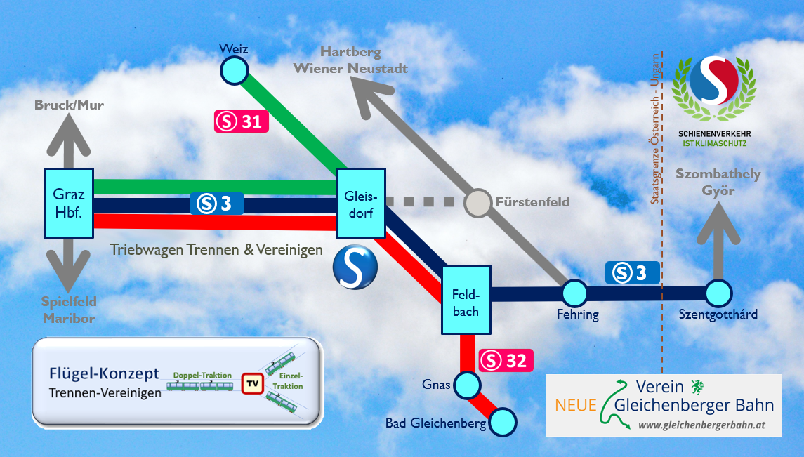 Flügel-Konzept S3 Steirische Ostbahn Trennen & Vereinigen, Weizer Bahn, Gleichenbrger Bahn, S31, S32