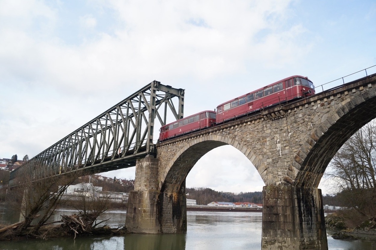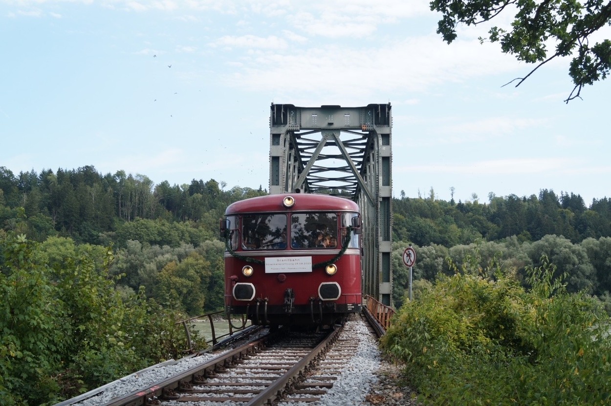 Die Granitbahn fährt über die Kräutlsteinbrücke. © Förderverein Lokalbahn Hauzenberg - Passau e.V.